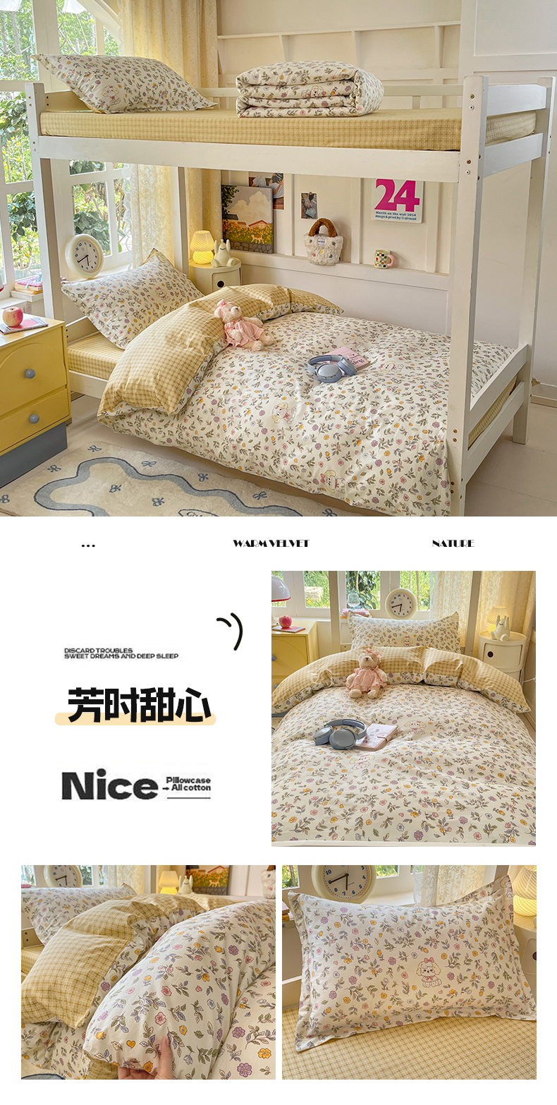当前位置: 91家纺网 > 商品网购 > 床品套件 > 三件套 > 涵宸家纺 2025新款学生图-全棉印花-ins印花三件套四件套 芳时甜心
