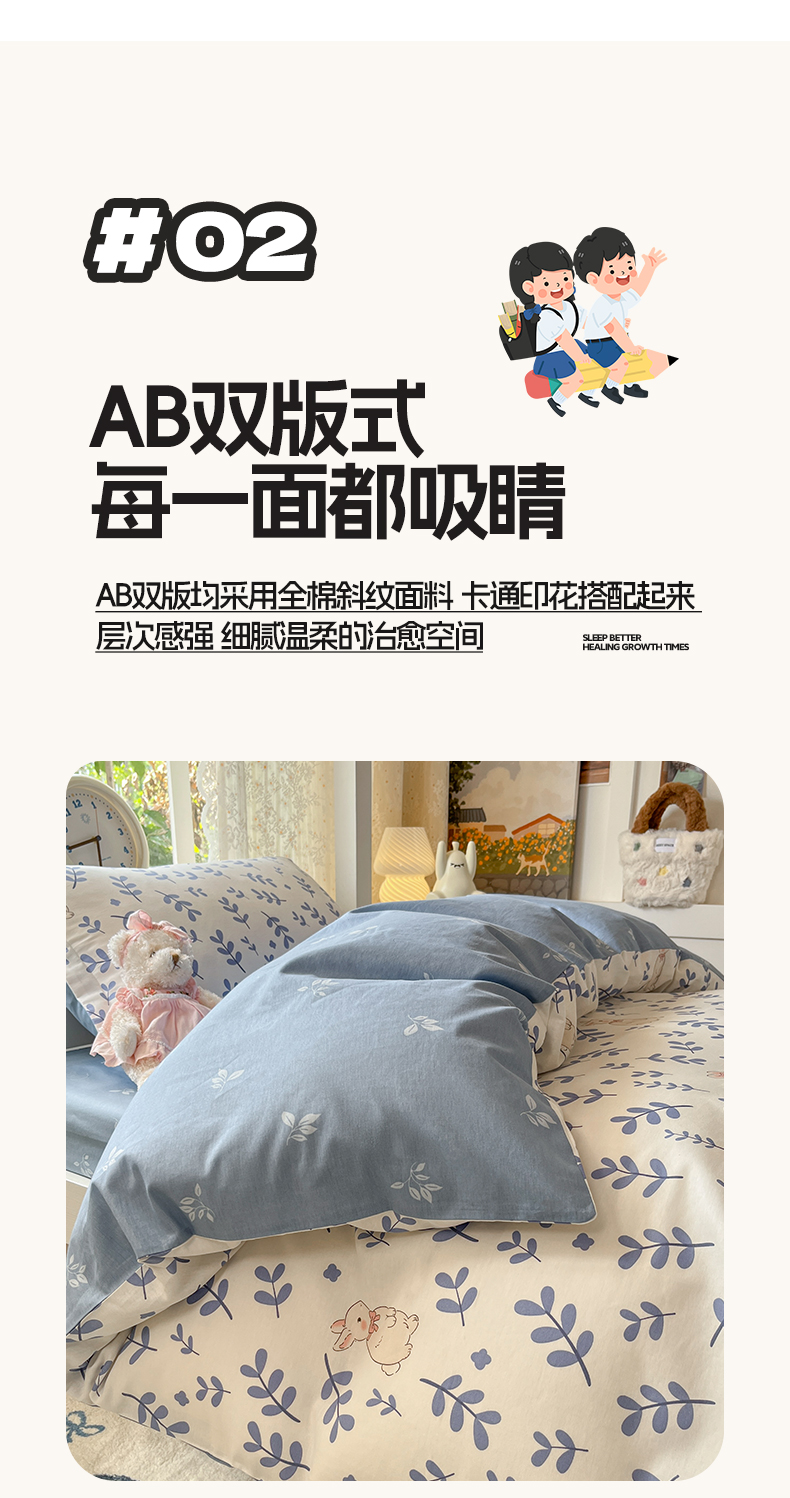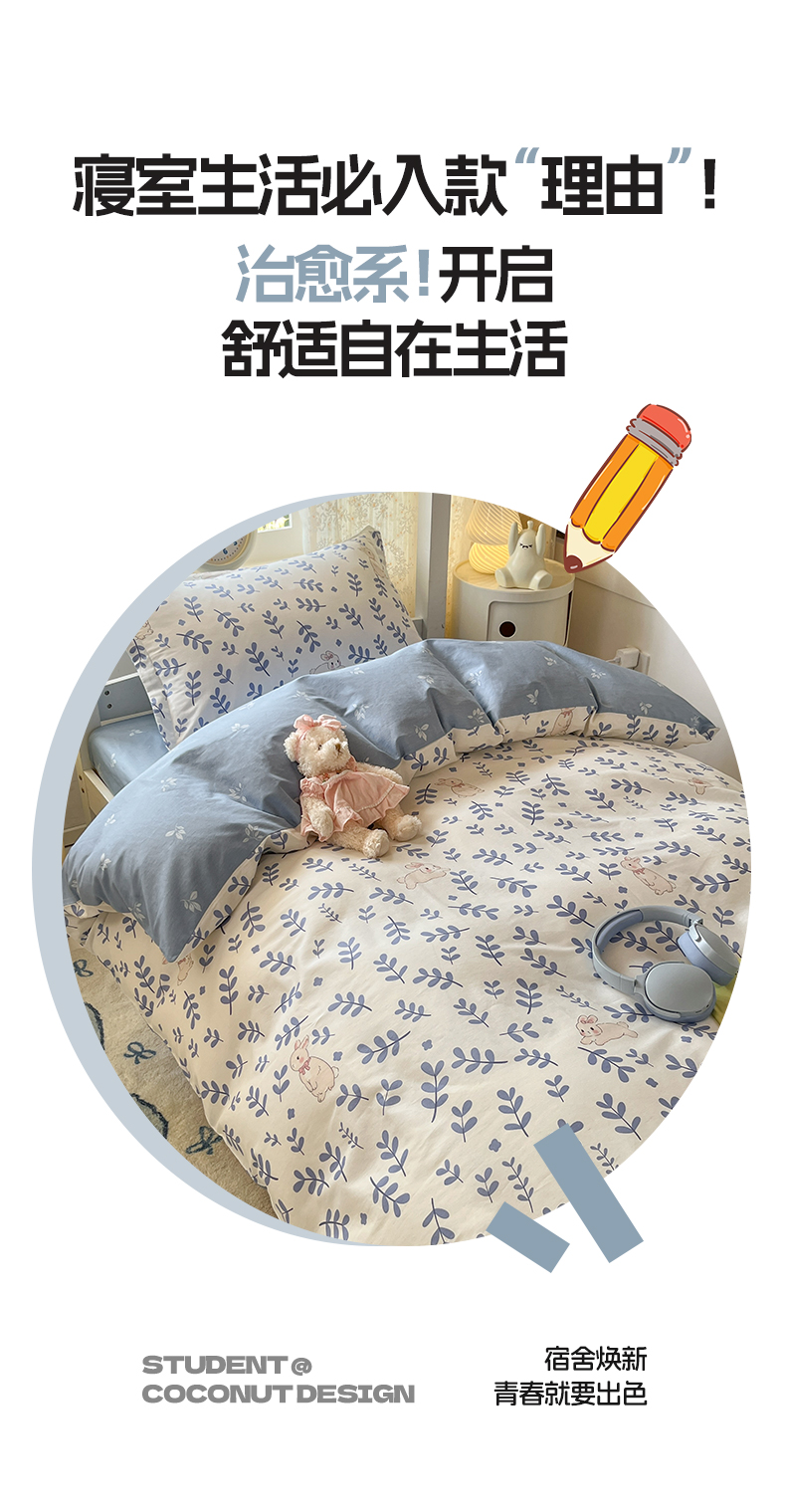 当前位置: 91家纺网 > 商品网购 > 床品套件 > 三件套 > 涵宸家纺 2025新款学生图-全棉印花-ins印花三件套四件套 兔影