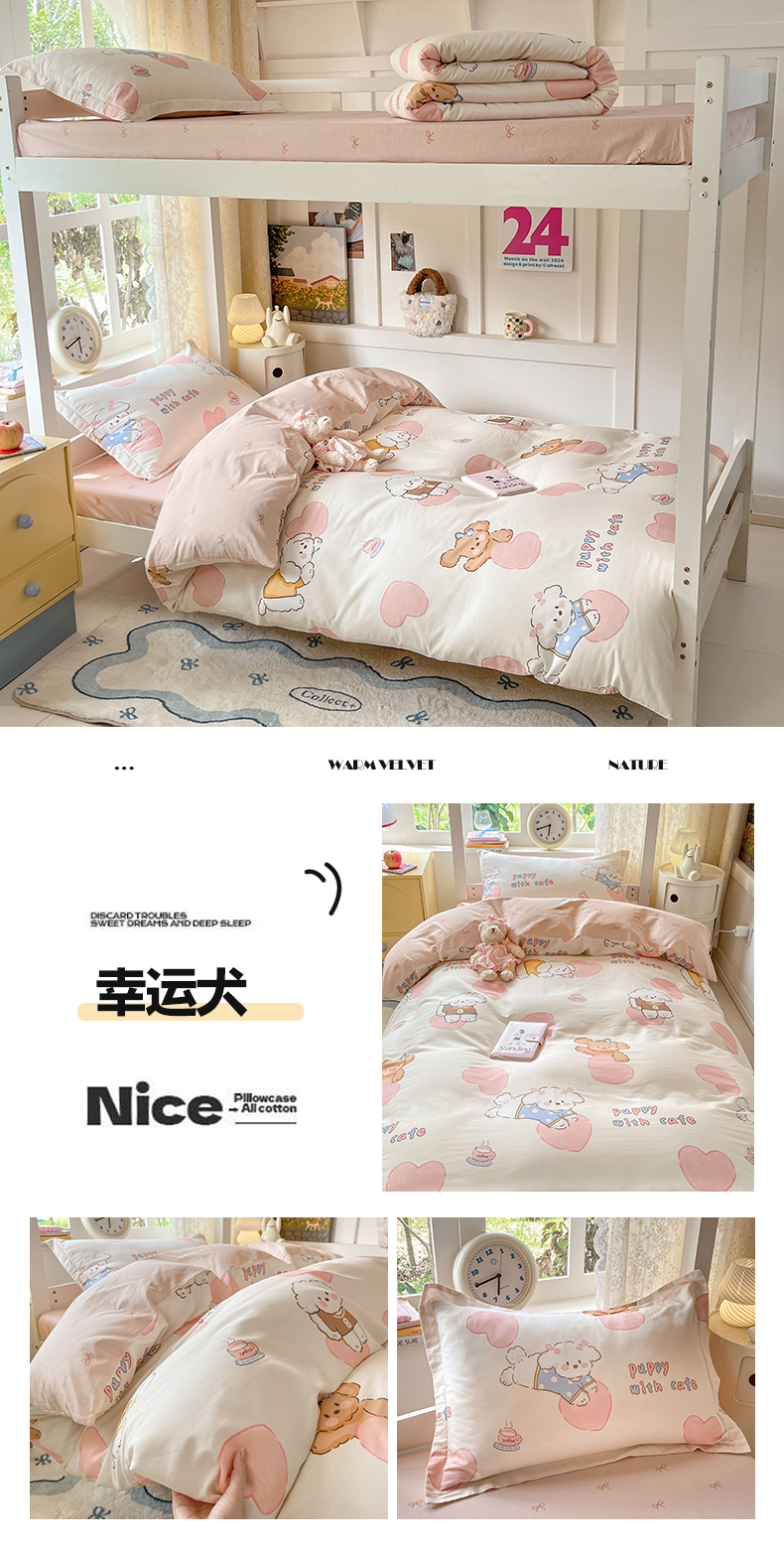 当前位置: 91家纺网 > 商品网购 > 床品套件 > 三件套 > 涵宸家纺 2025新款学生图-全棉印花-甜系三件套四件套 A幸运犬