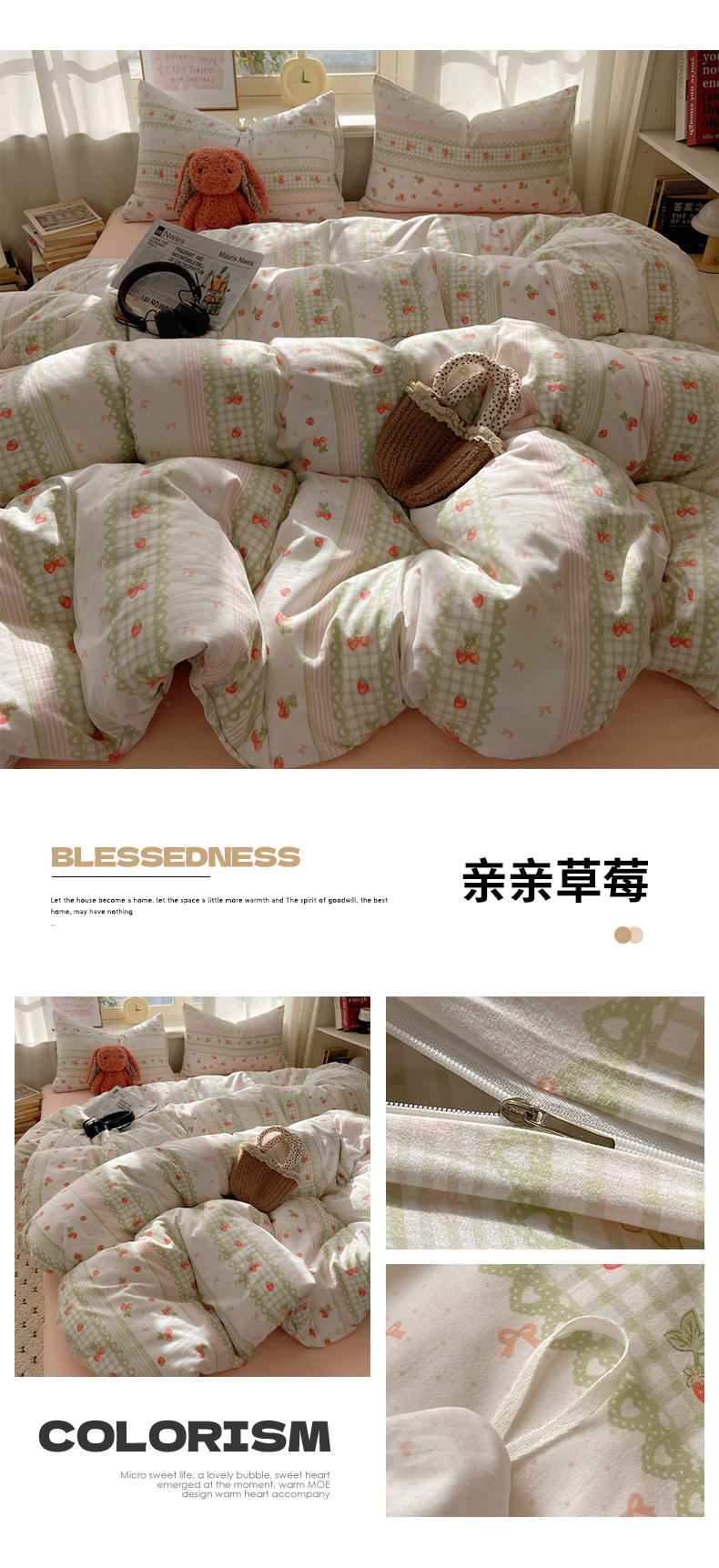 当前位置: 91家纺网 > 商品网购 > 床品套件 > 四件套 > 双层纱四件套 > 芷凡家纺 2025新款水洗棉双层纱四件套 亲亲草莓