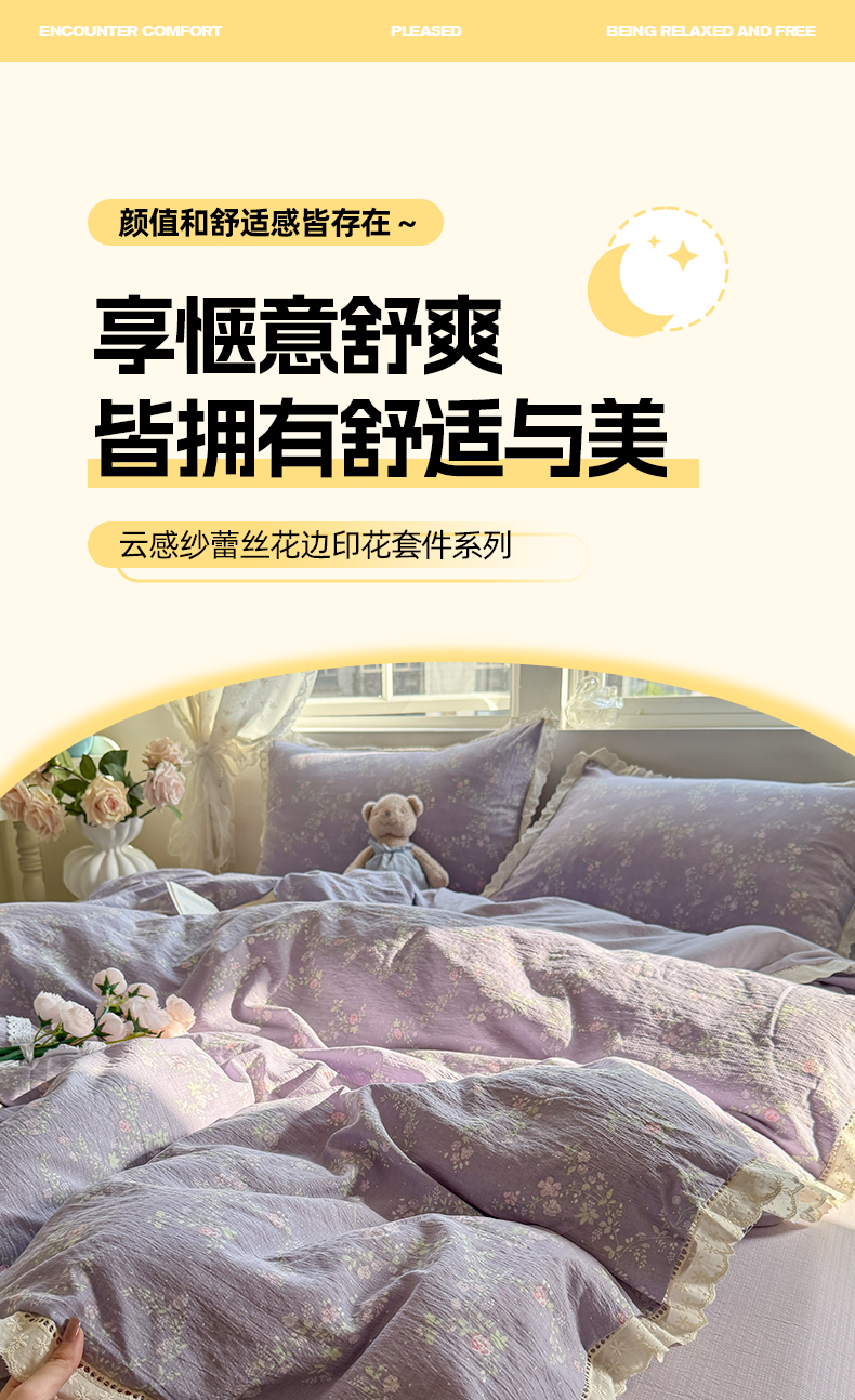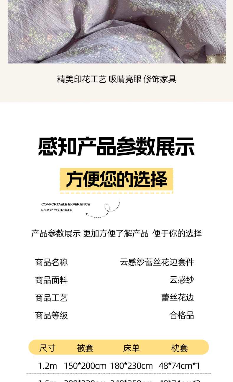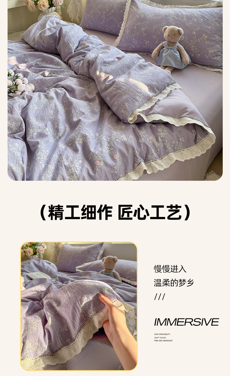 商品名称:Mata蔓塔家 2025新款云感双层纱全棉镂空花边四件套 梦境低语