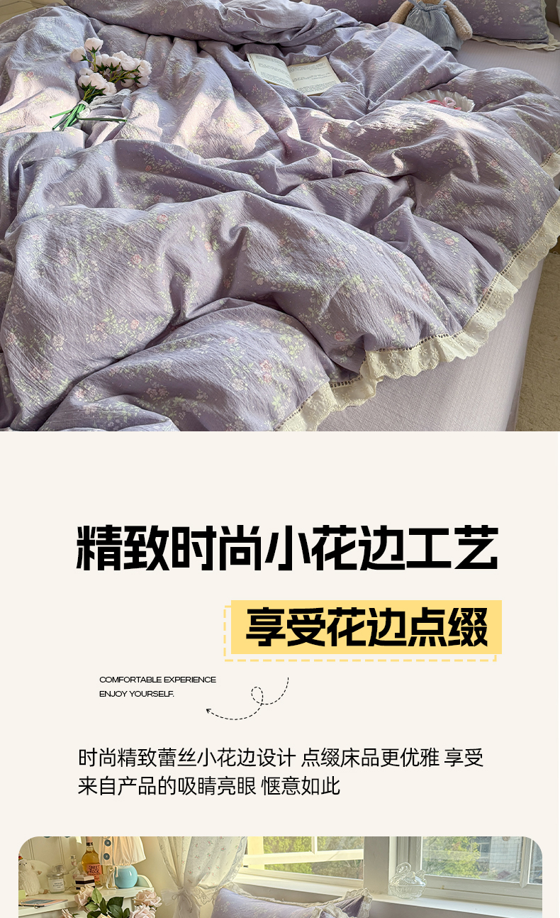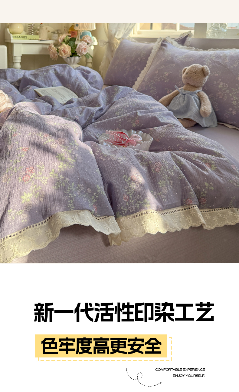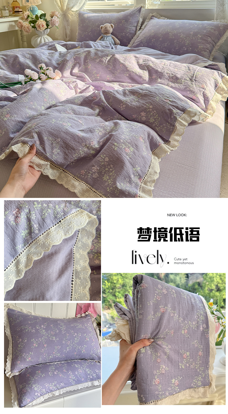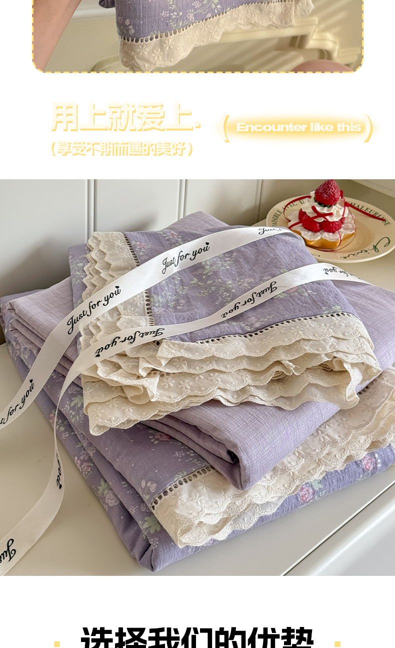 (总)Mata蔓塔家 2025新款云感双层纱全棉镂空花边四件套,草莓心愿,狗狗伙伴,桔梗语,咖啡豆,蓝风铃,落樱小屋,梦境低语,梦疏花影,青花瓷,肉桂,山楂西高地,颂歌,田园诗,兔子琴曲,夏岛,小彩糖,紫蝴蝶