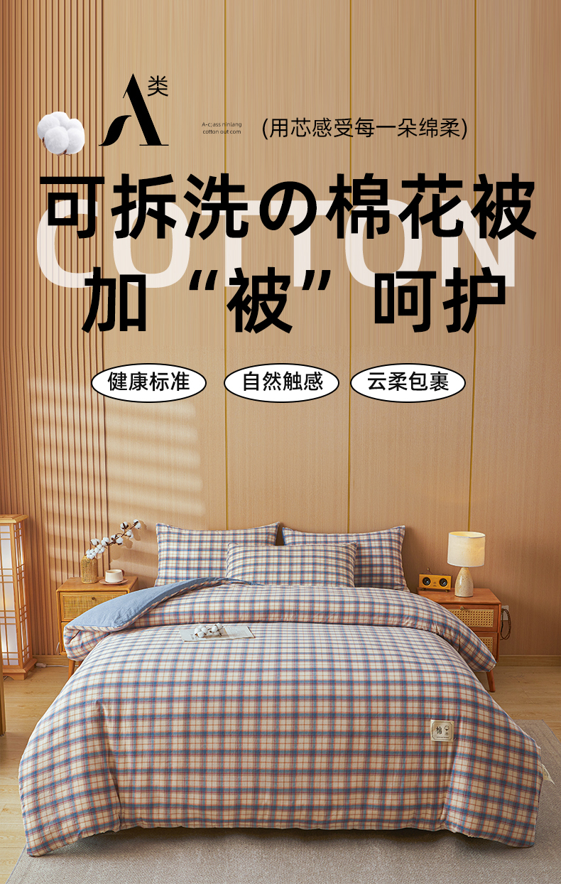 爱屋及屋 2025新款水洗棉可拆洗棉花被被子被芯 贝拉蓝