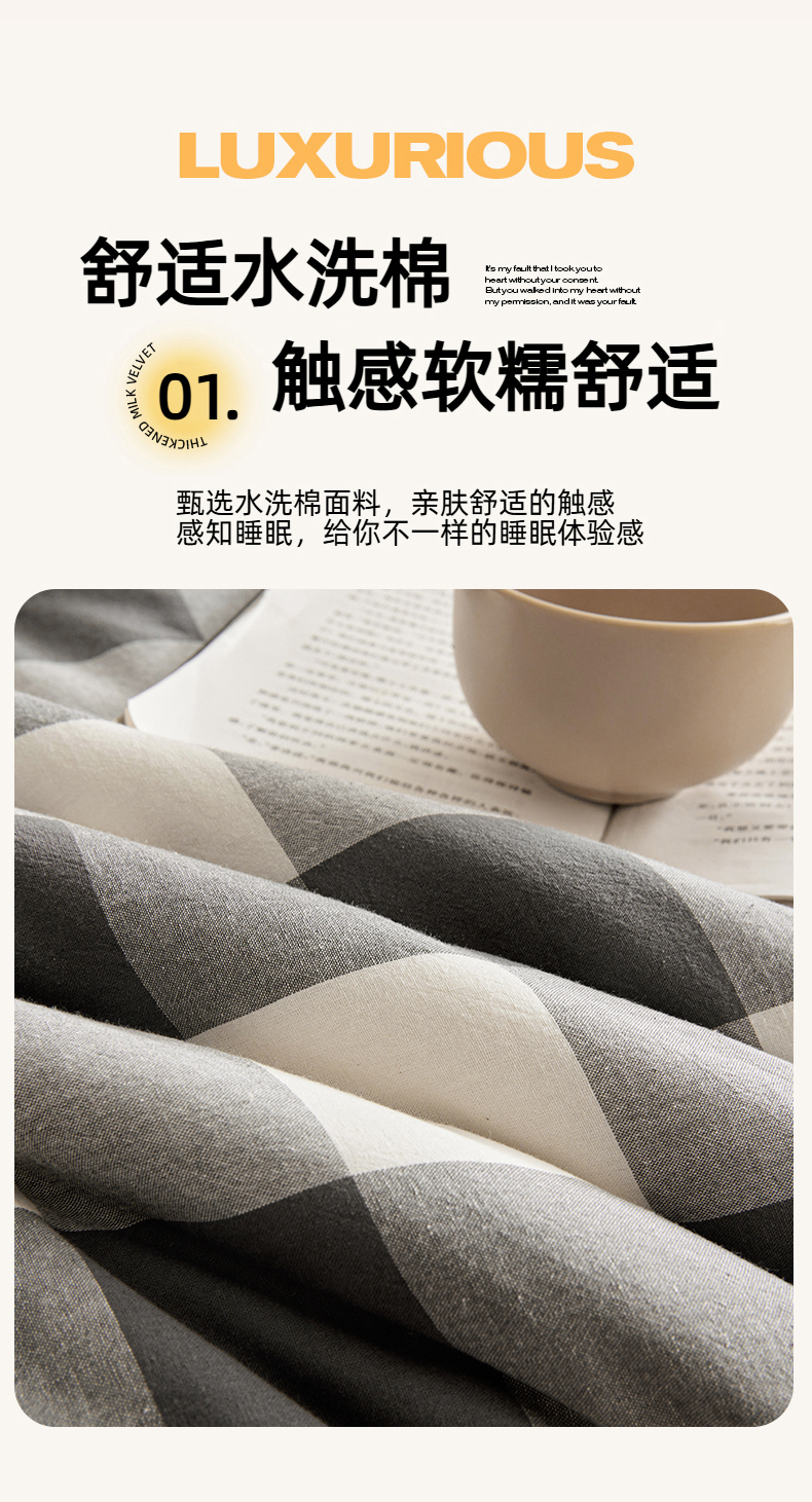 • 91家纺网 家纺一手货源 找家纺 爱屋及屋 2025新款无印风水洗棉棉花冬被被子被芯 灰中格
