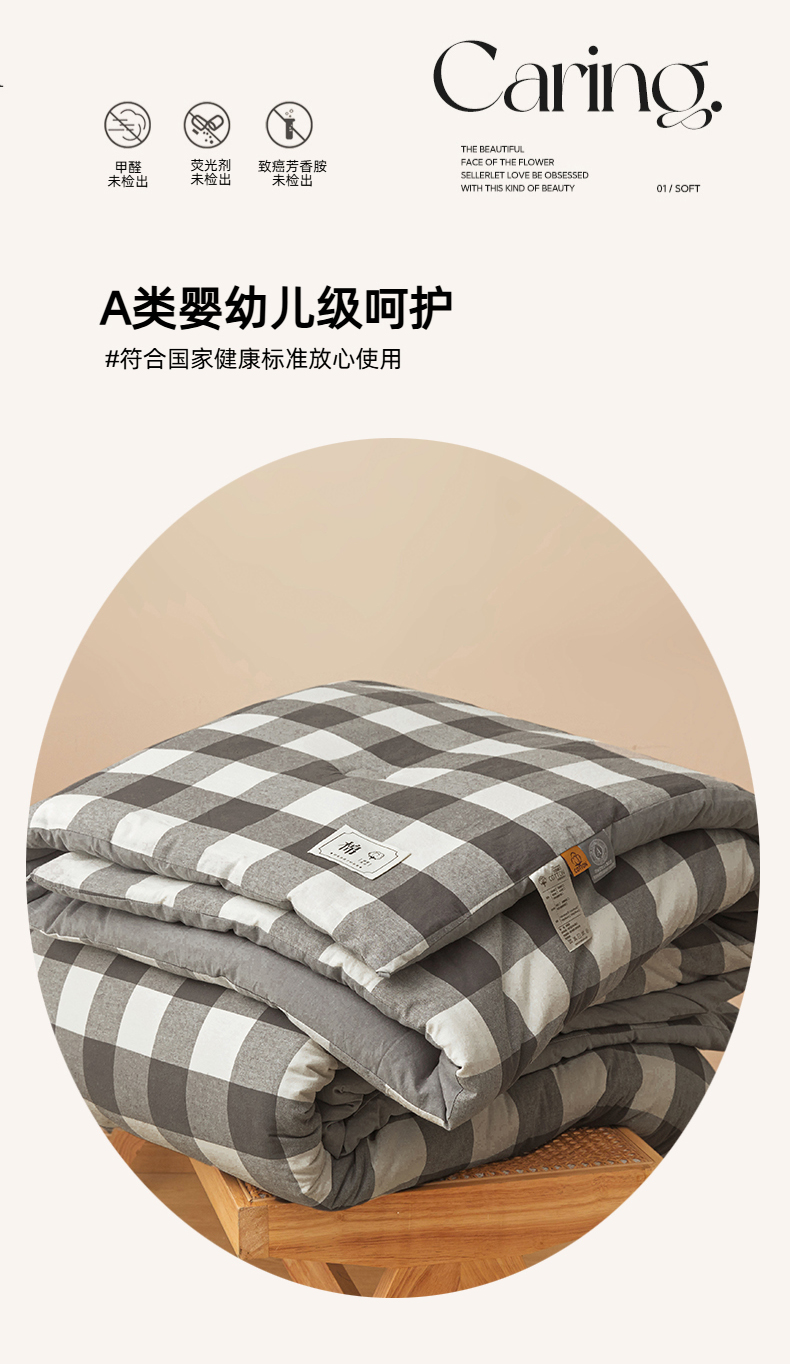 当前位置: 91家纺网 > 商品网购 > 被子 > 冬被 > 爱屋及屋 2025新款无印风水洗棉棉花冬被被子被芯 灰中格