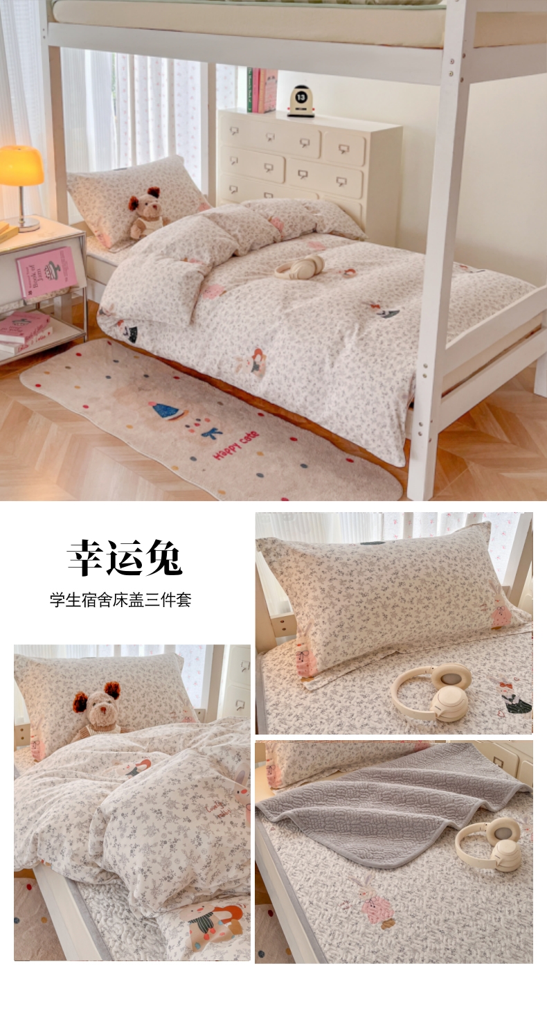 商品名称:慕晨 2025新款全棉学生床盖宿舍印花纯棉床盖三件套AB版皆可用四季通用直播 巧克力蝴蝶结