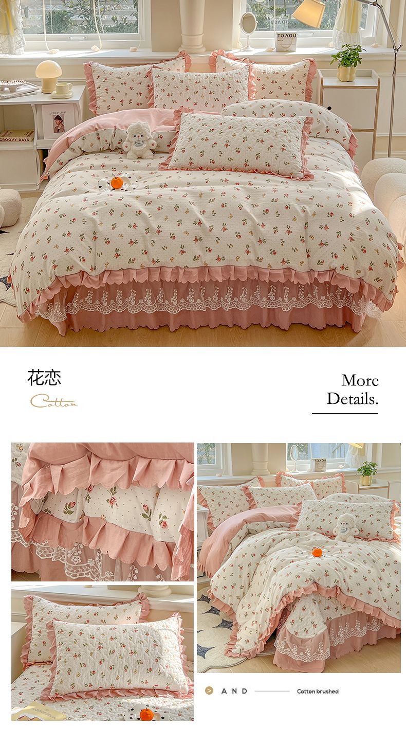 当前位置: 91家纺网 > 商品网购 > 床品套件 > 四件套 > 其它四件套 > 金梦家居 2025新款印花小竹棉花边夹棉床盖被套四件套 真爱