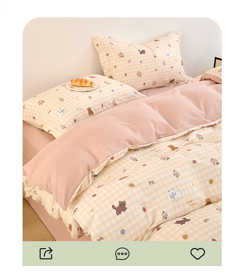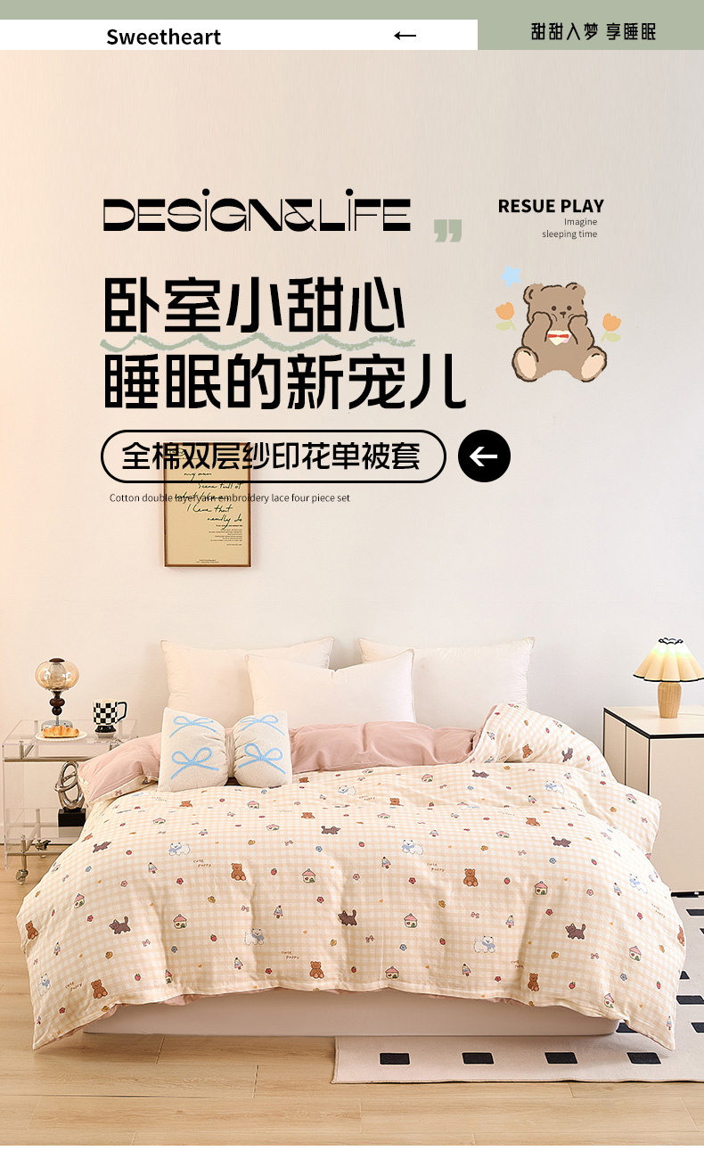 • 91家纺网 家纺一手货源 找家纺 锦罗绣 2025新款全棉双层纱印花单被套(第二批) 甜蜜小屋