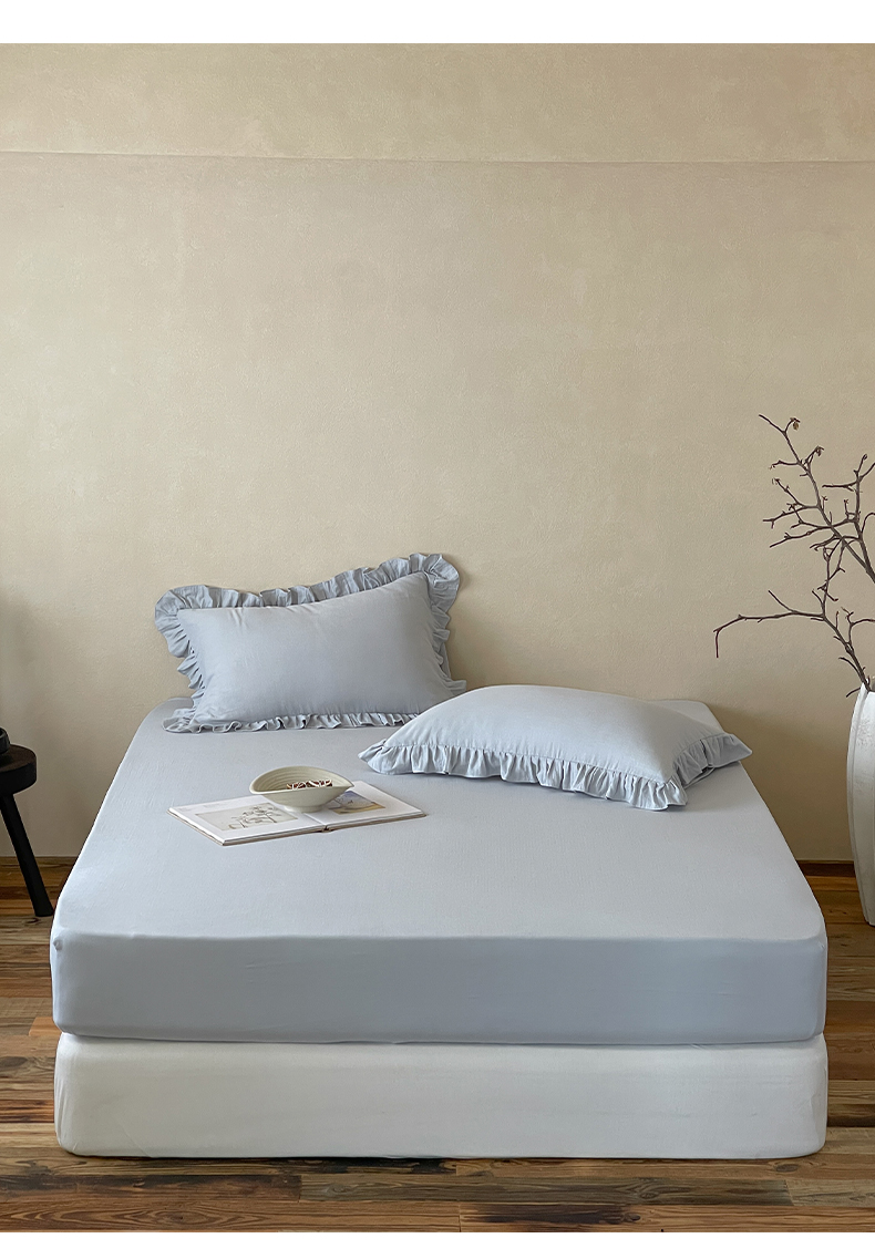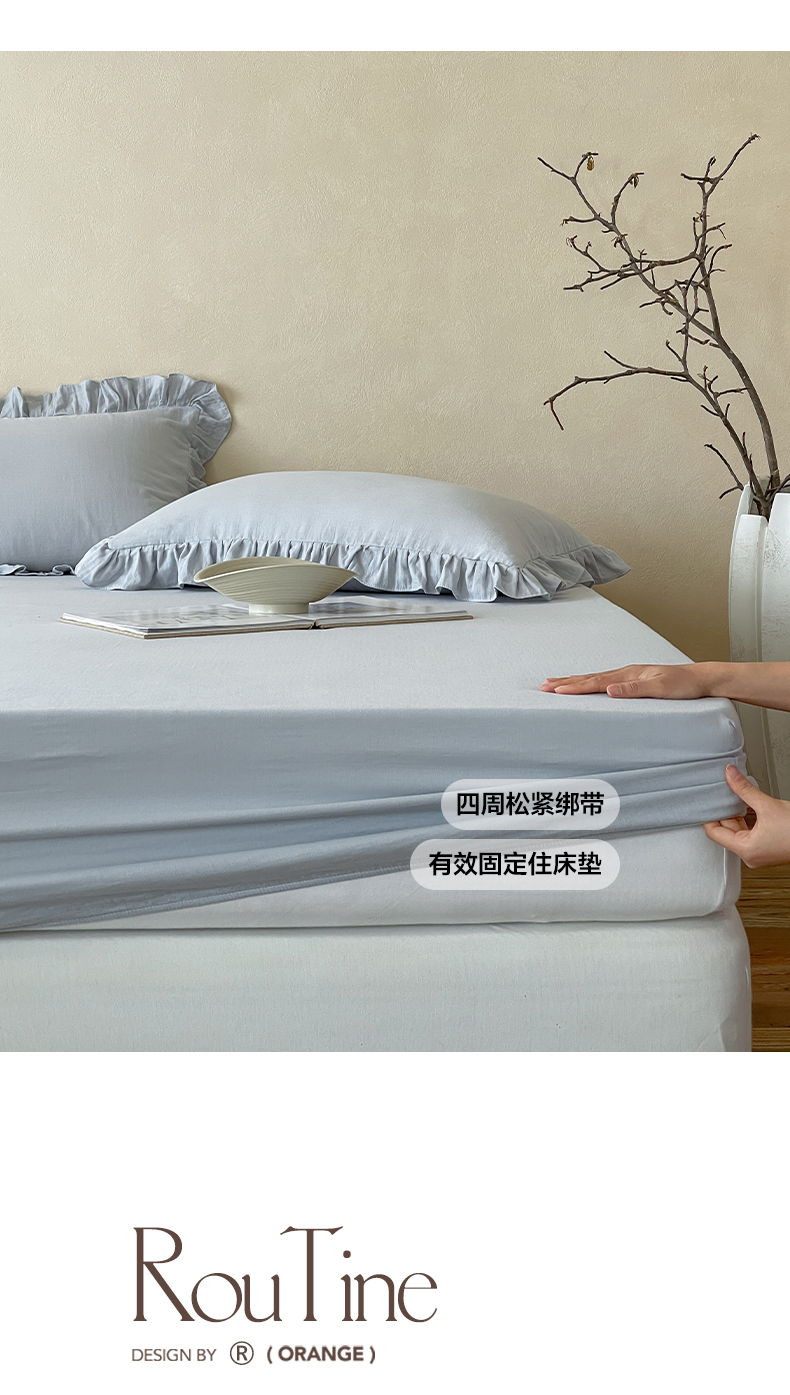 商品名称:三味舒屋 2025新款花边美学全棉双层纱单品单床笠 海岛迷雾