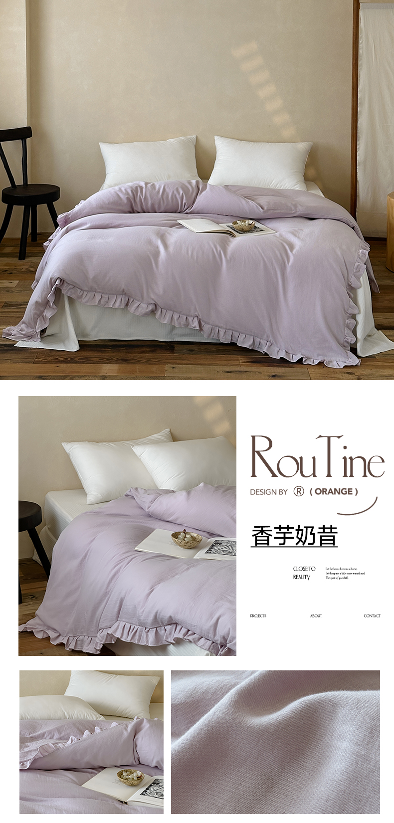 商品名称:三味舒屋 2025新款花边美学全棉双层纱单品单被套 云舒白
