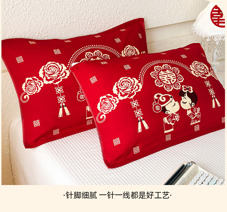 • 91家纺网 家纺一手货源 找家纺 悦然毛巾被 2025新款悦然三层大红枕巾婚庆三层全棉纯棉纱布枕巾 相亲相爱 52x78cm枕巾一只