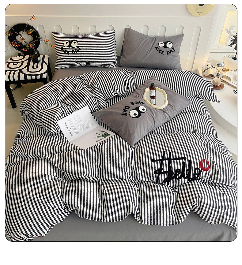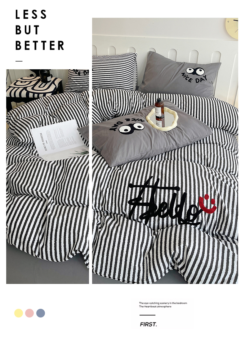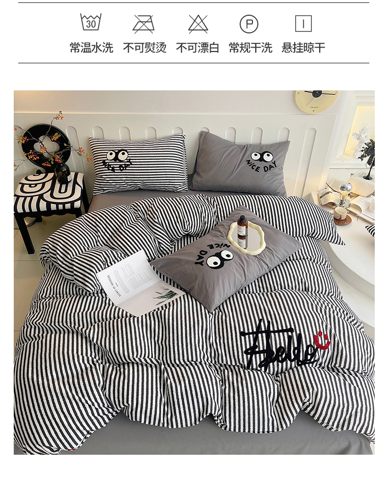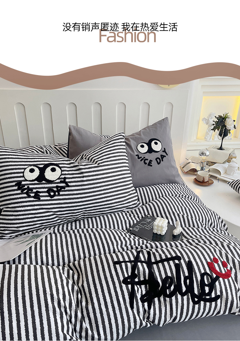 炫拼家纺 2025新款全棉磨毛ins风毛巾绣纯棉四件套-hello系列 hello-弥野