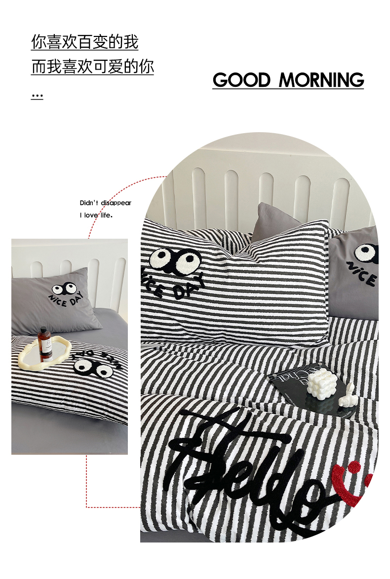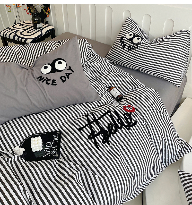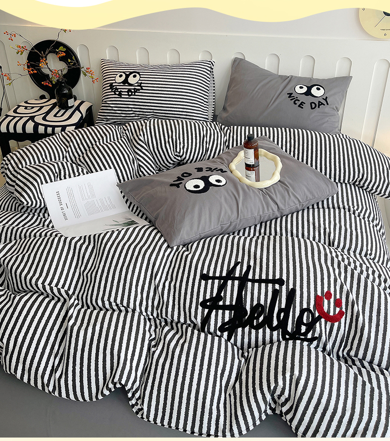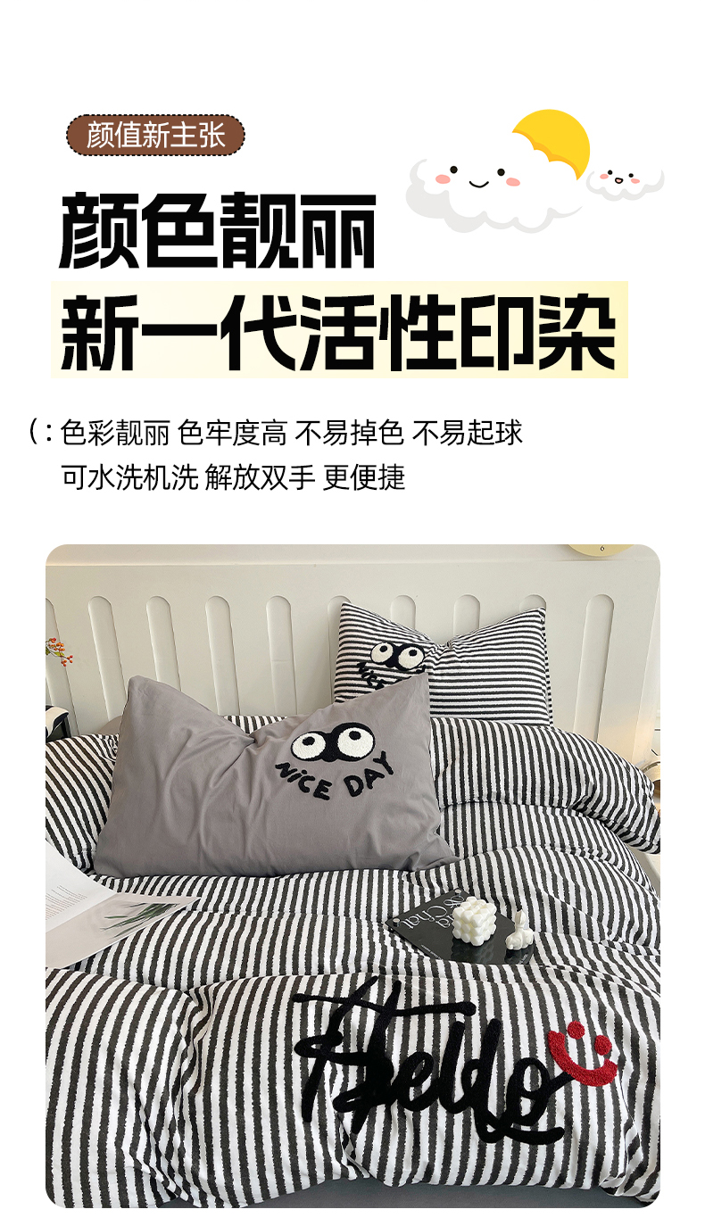 炫拼家纺 2025新款全棉磨毛ins风毛巾绣纯棉四件套-hello系列 hello-弥野