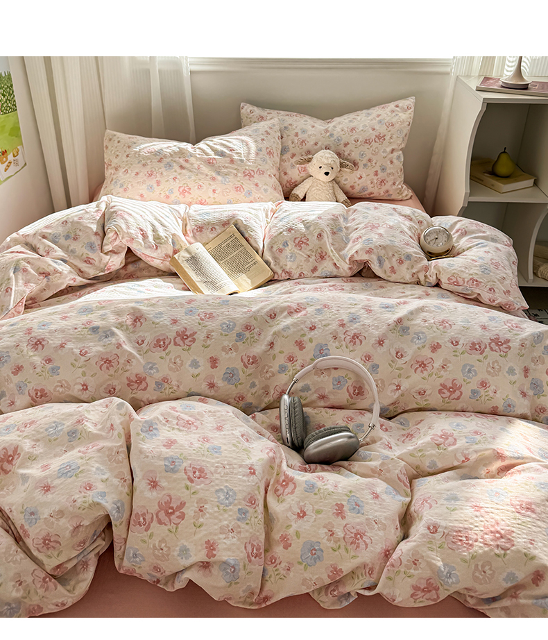 当前位置: 91家纺网 > 商品网购 > 床品套件 > 四件套 > 其它四件套 > 多品家纺 2025新款超柔云感双层纱四件套 花城粉