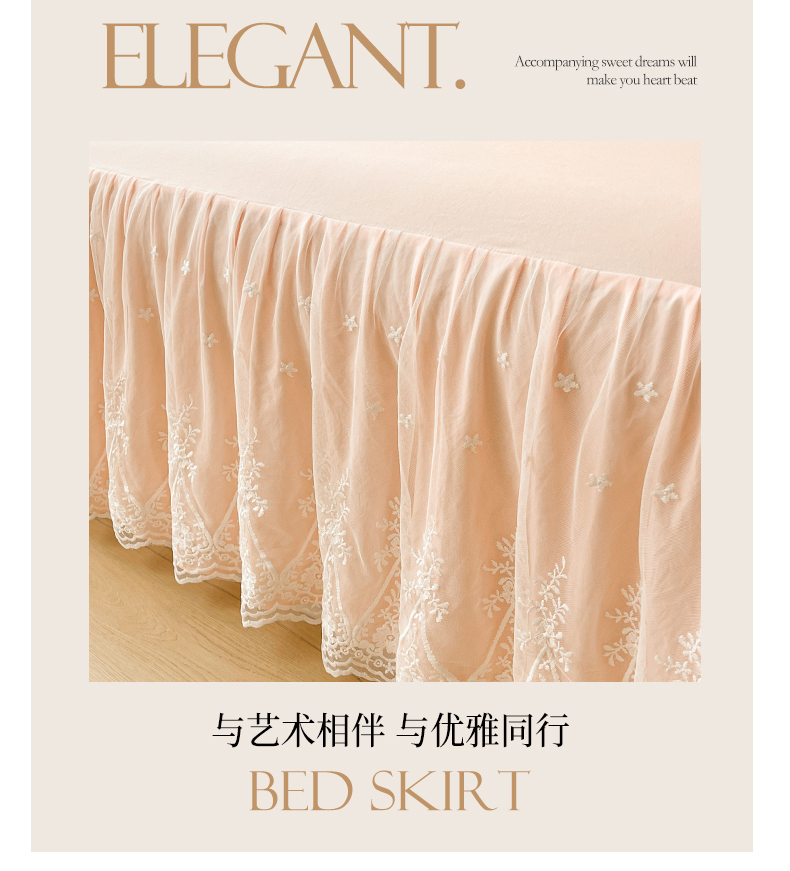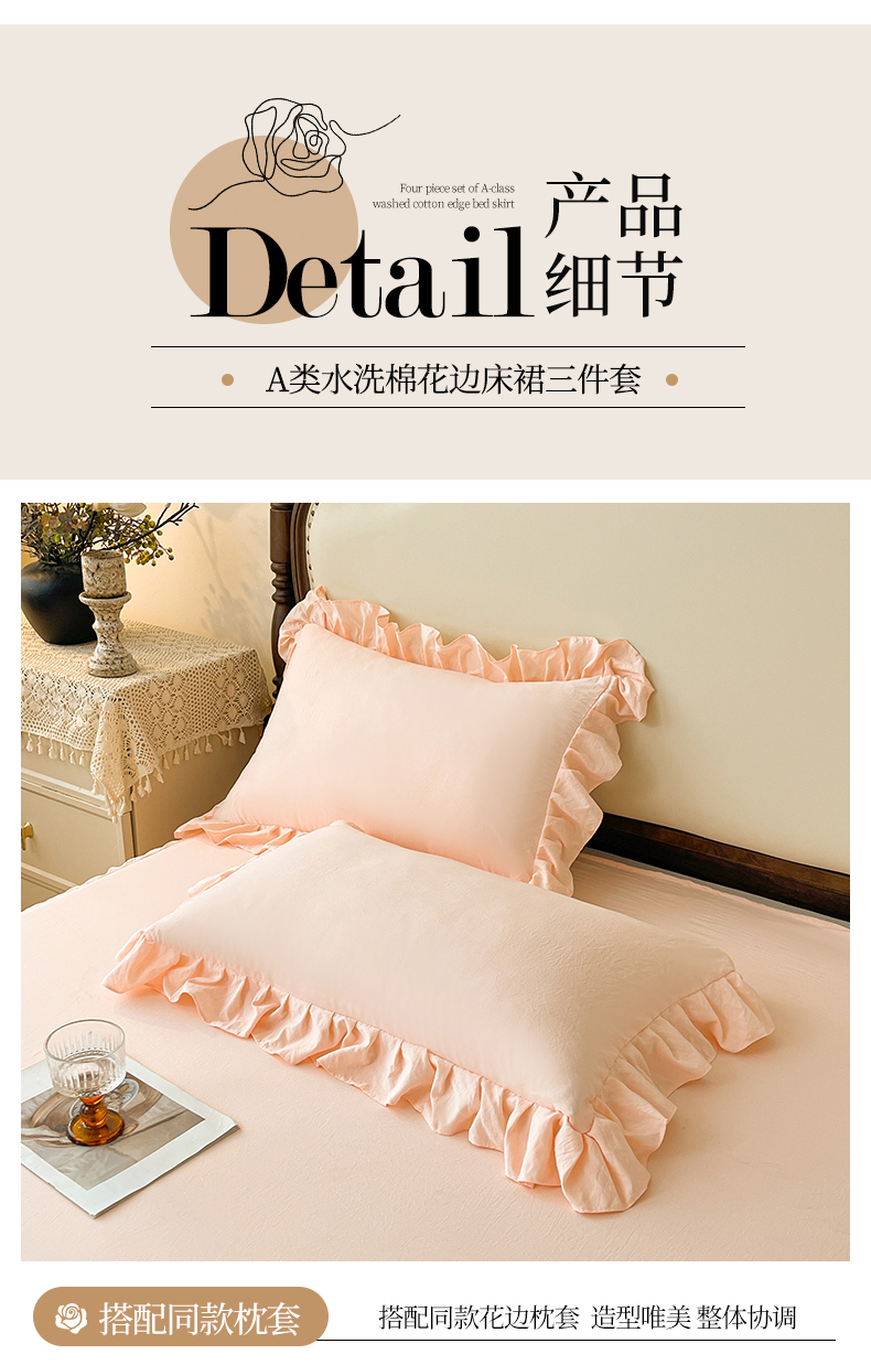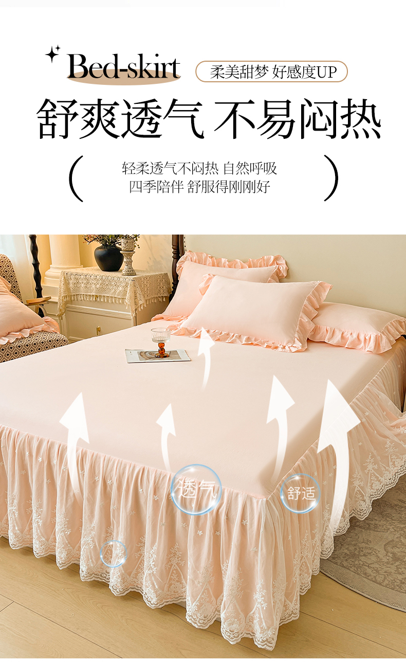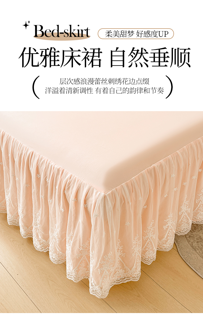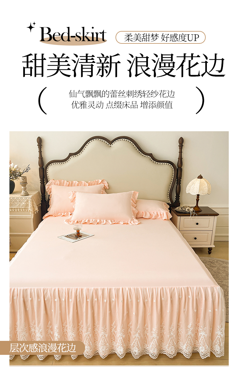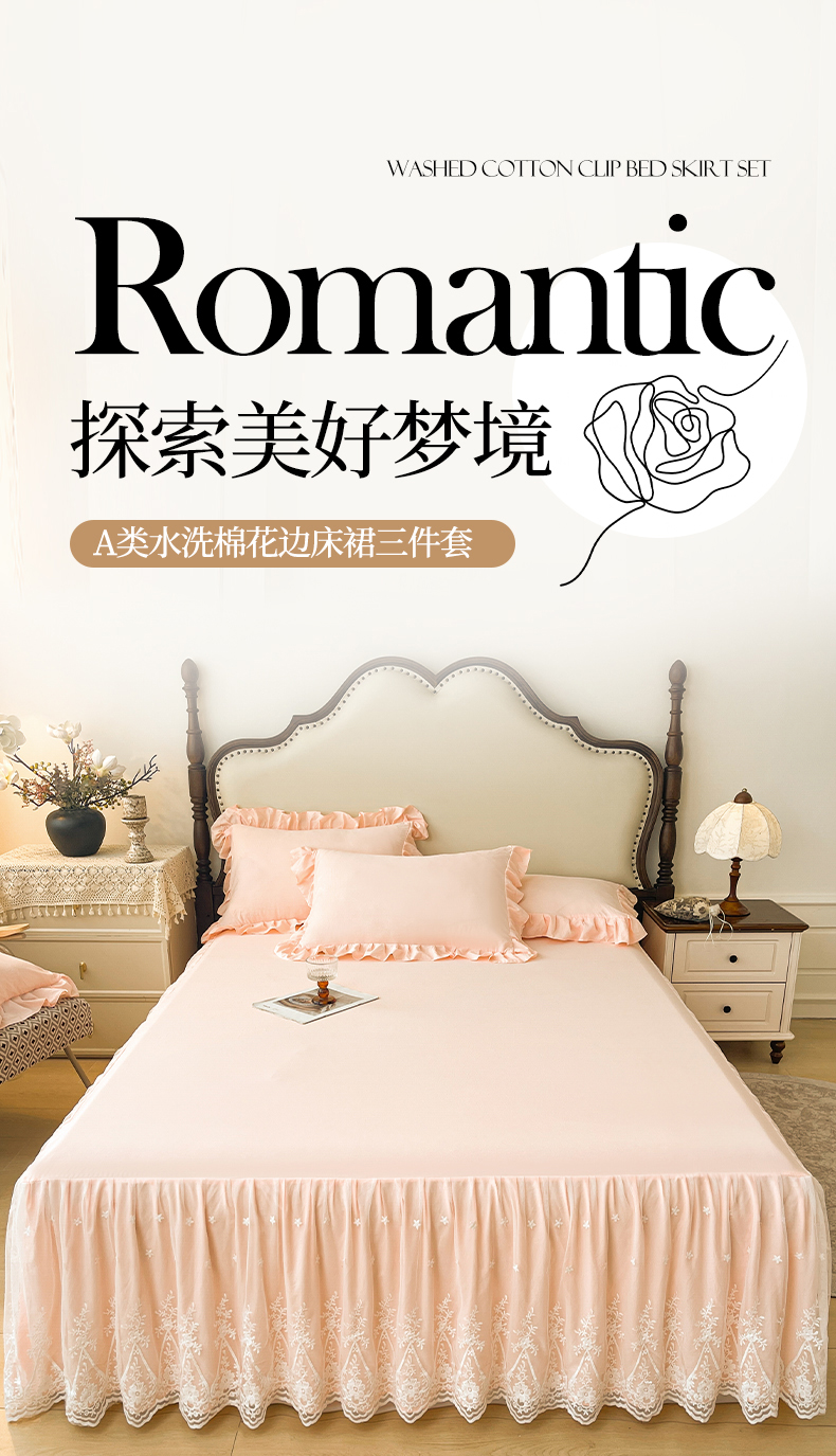 当前位置: 91家纺网 > 商品网购 > 床品套件 > 三件套 > 好儿喜家纺 2025新款A类水洗棉花边床裙蕾丝床罩三件套-梦之香 梦之香-浅粉