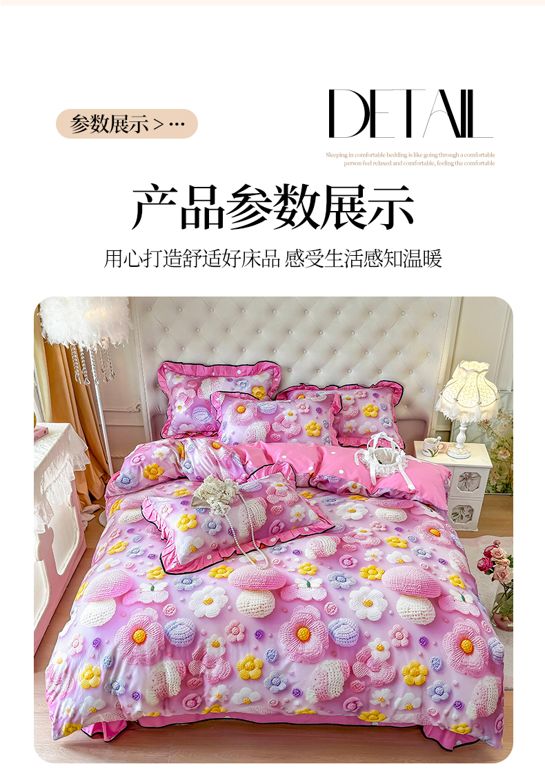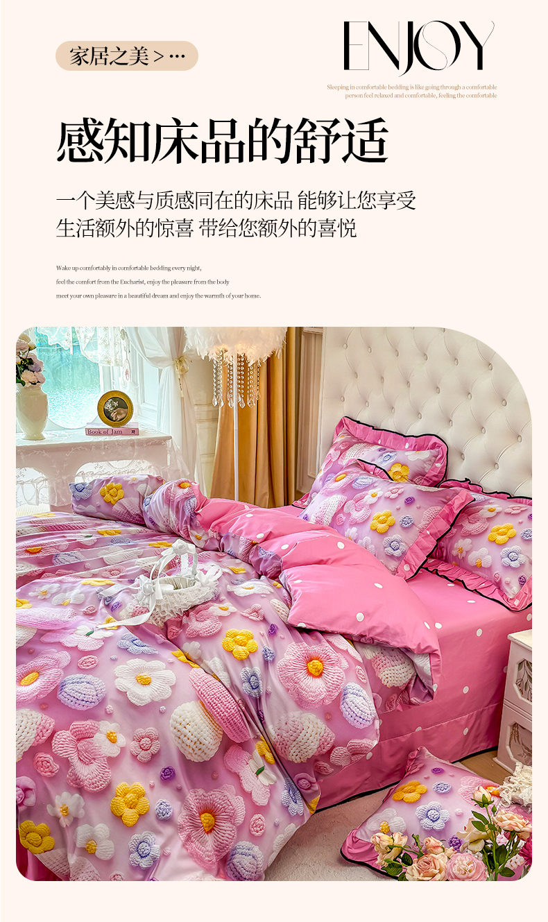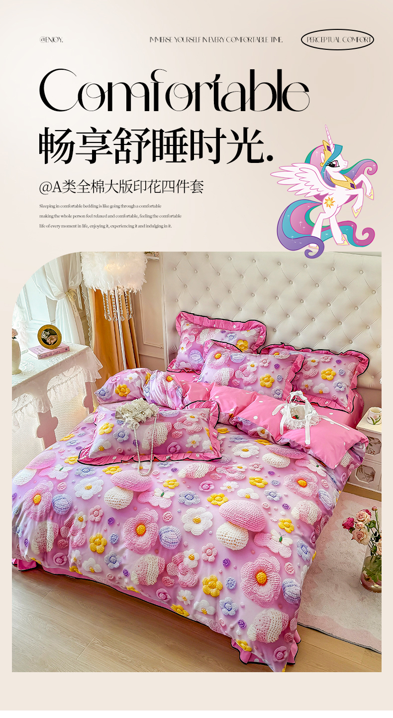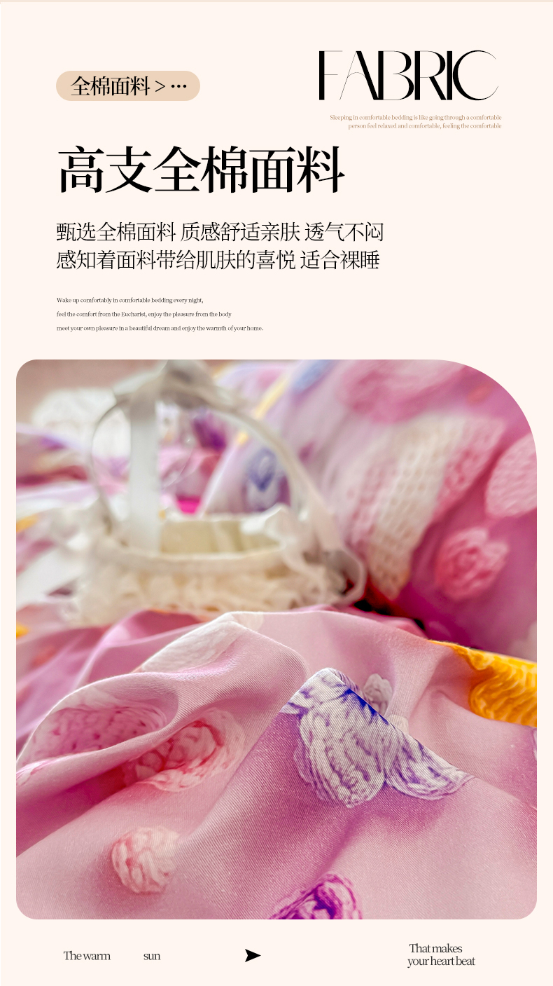 商品名称:馨语家居 2025新款A类全棉3D大版印花四件套 一路生花