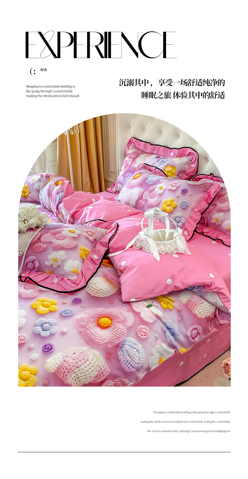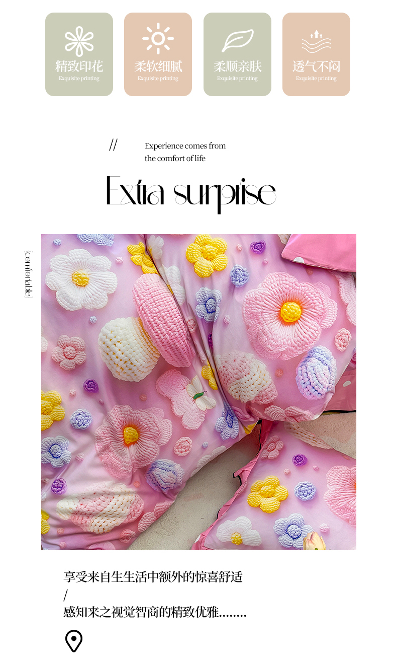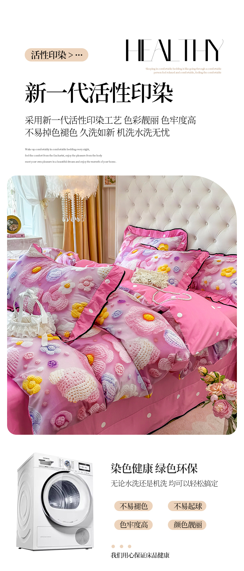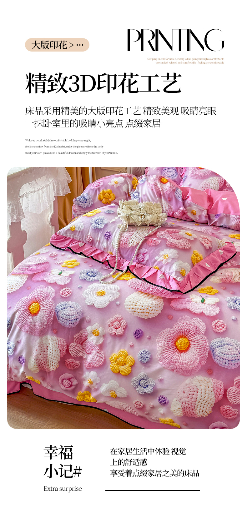 商品名称:馨语家居 2025新款A类全棉3D大版印花四件套 一路生花