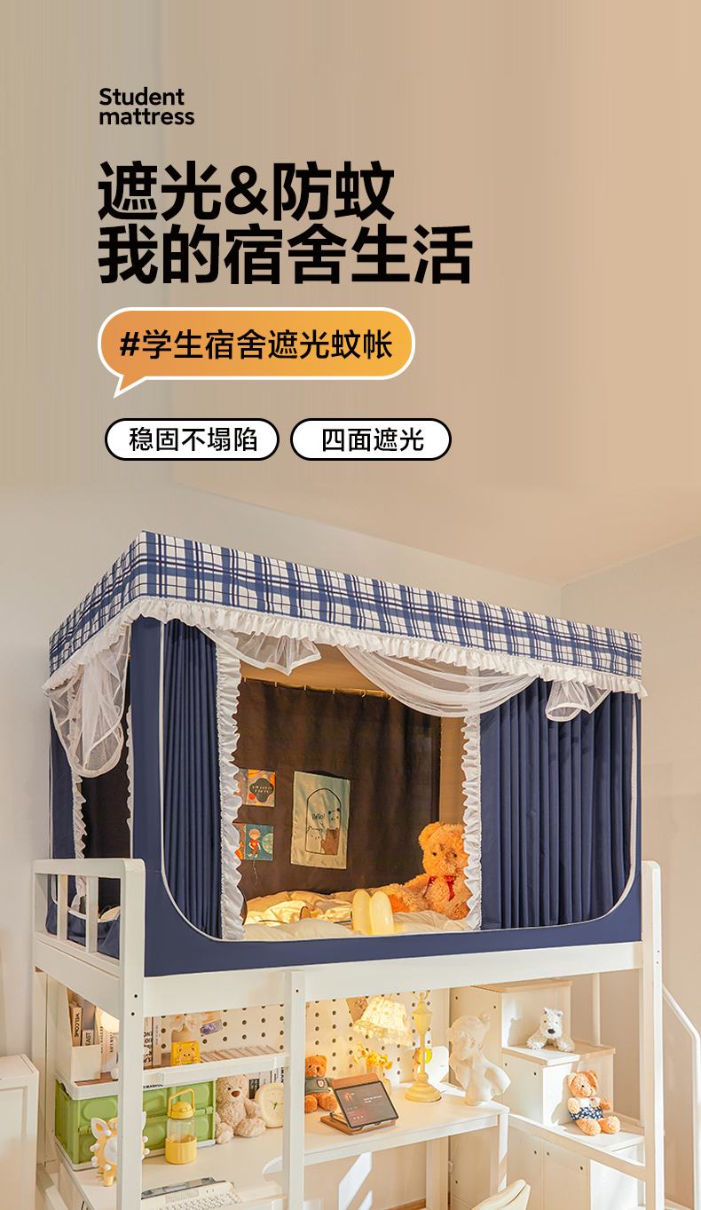 当前位置: 91家纺网 > 商品网购 > 床上用品 > 蚊帐 > 学生蚊帐 > 安金蚊帐 2025新款防蚊遮光一体99%强遮光宿舍上下铺遮光学生蚊帐格子花边 小香条格-藏蓝