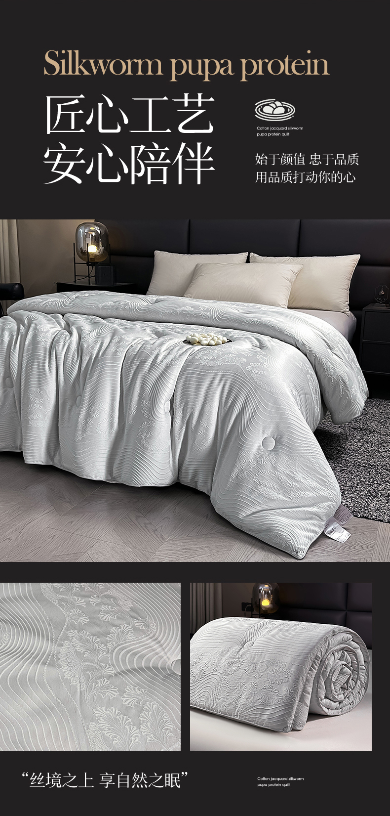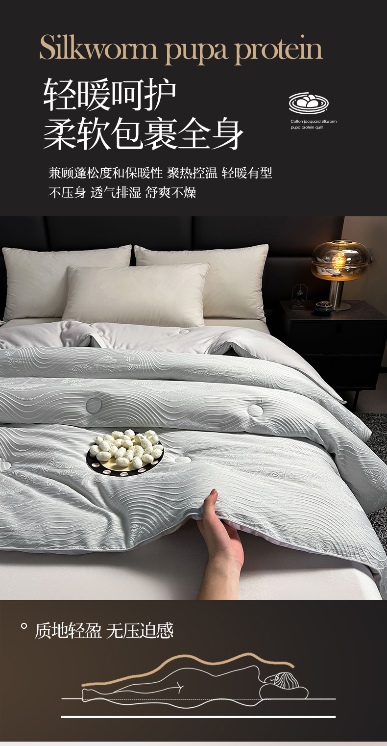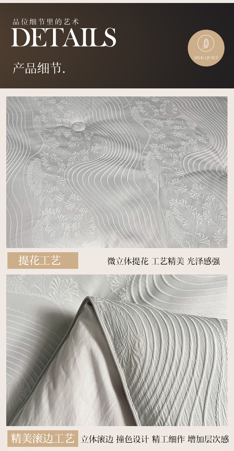 • 91家纺网 家纺一手货源 找家纺 兴邦家纺 2026新款全棉提花蚕丝被加厚冬被春秋被蚕蛹蛋白被外贸跨境被子被芯直播爆款 浮雕款-花影-灰