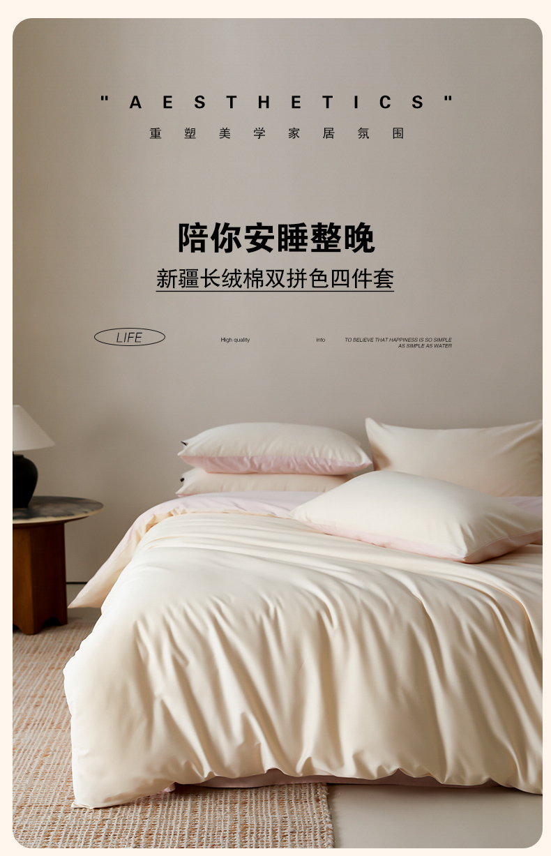 当前位置: 91家纺网 > 商品网购 > 床品套件 > 四件套 > 全棉普通四件套 > 云栖家居 2025新款全棉纯棉纯色双拼色长绒棉纯棉四件套--极简 米粒碎&玉兰粉