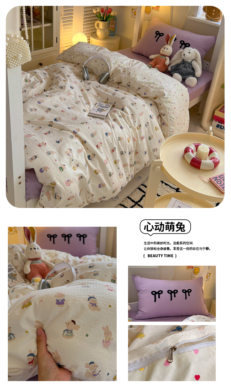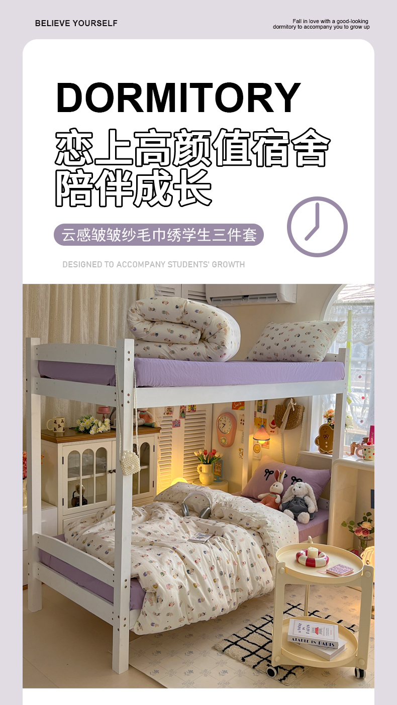 当前位置: 91家纺网 > 商品网购 > 床品套件 > 三件套 > 三元色 2025新款云感毛巾绣学生三件套 心动萌兔