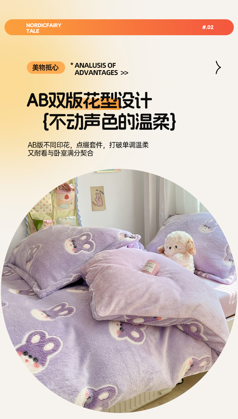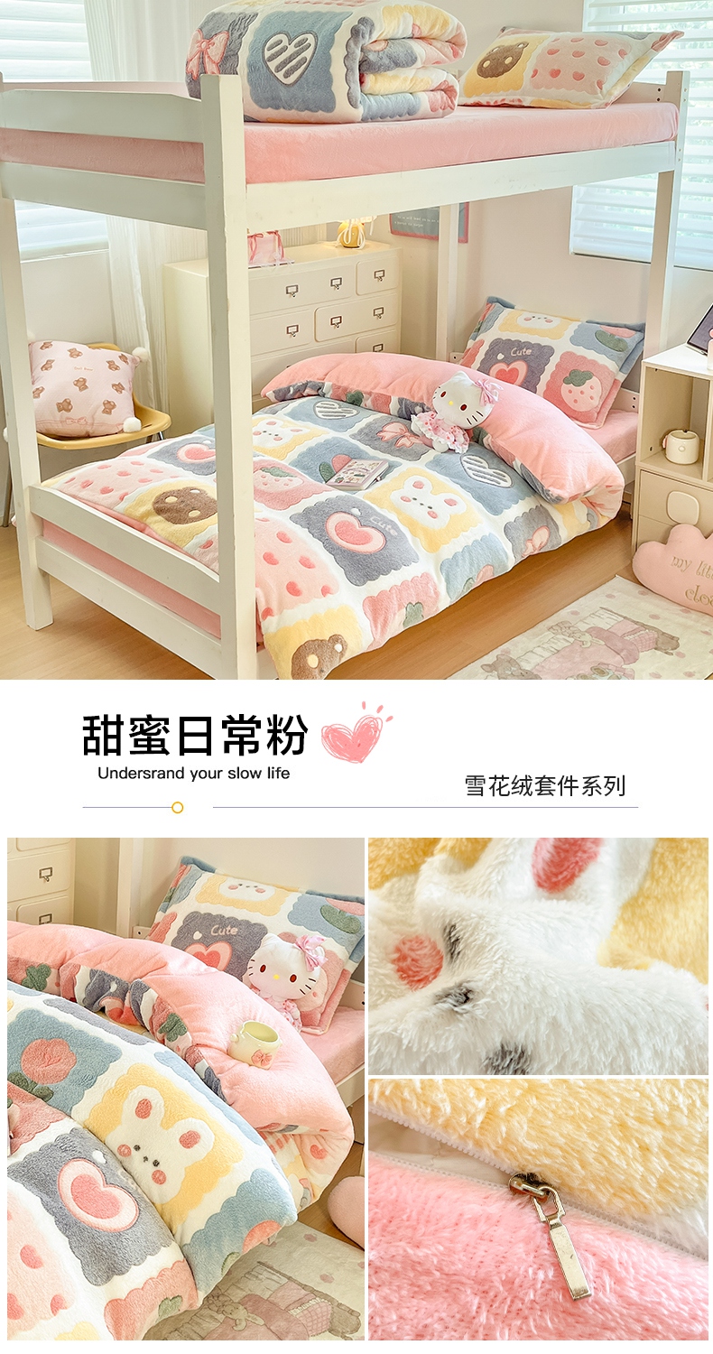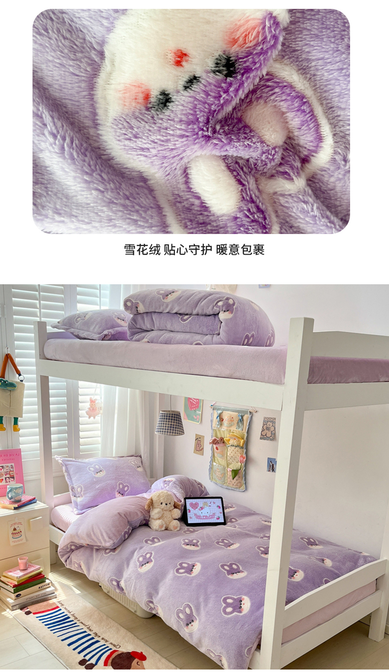 当前位置: 91家纺网 > 商品网购 > 床品套件 > 四件套 > 其它四件套 > 川悦生活 2025新款立体雪花绒印花四件套学生床系列一场景一 妮娜兔