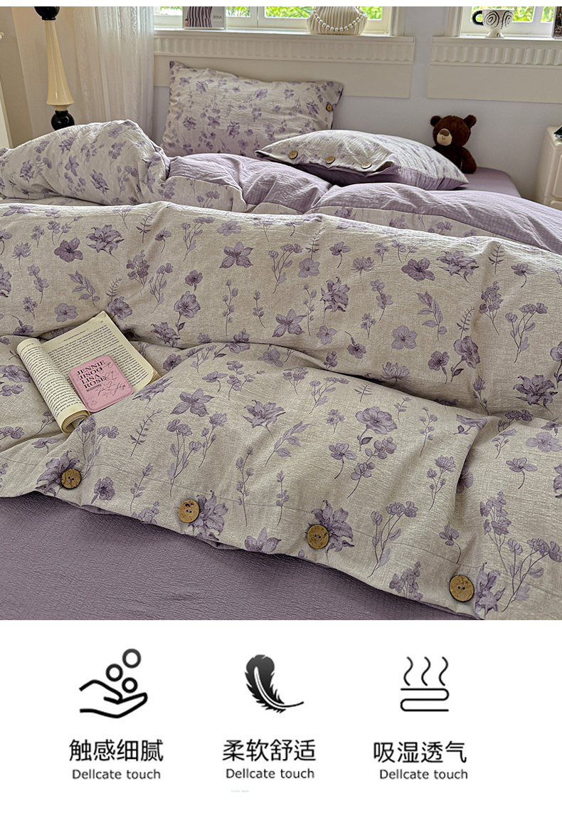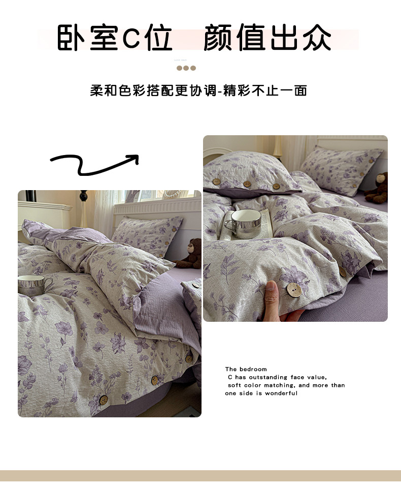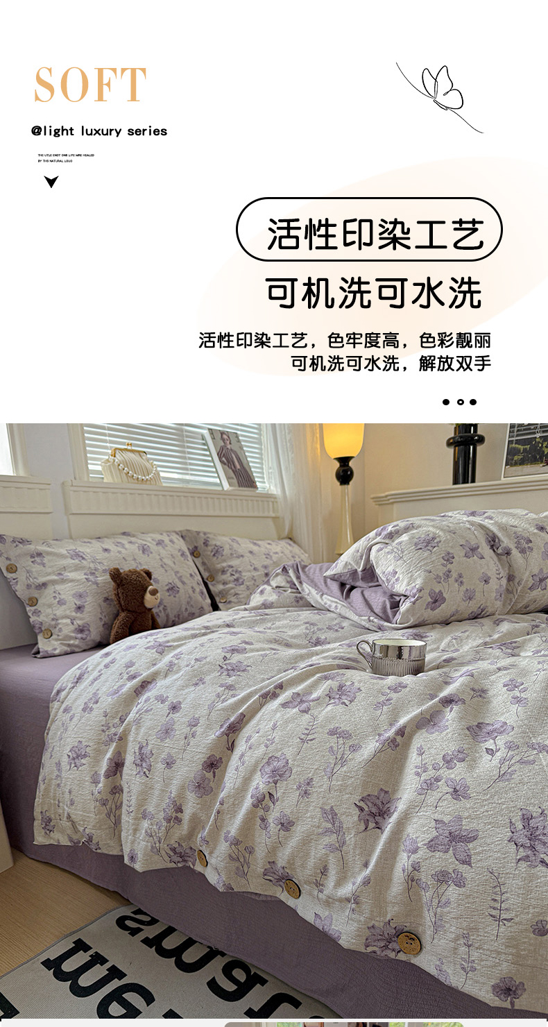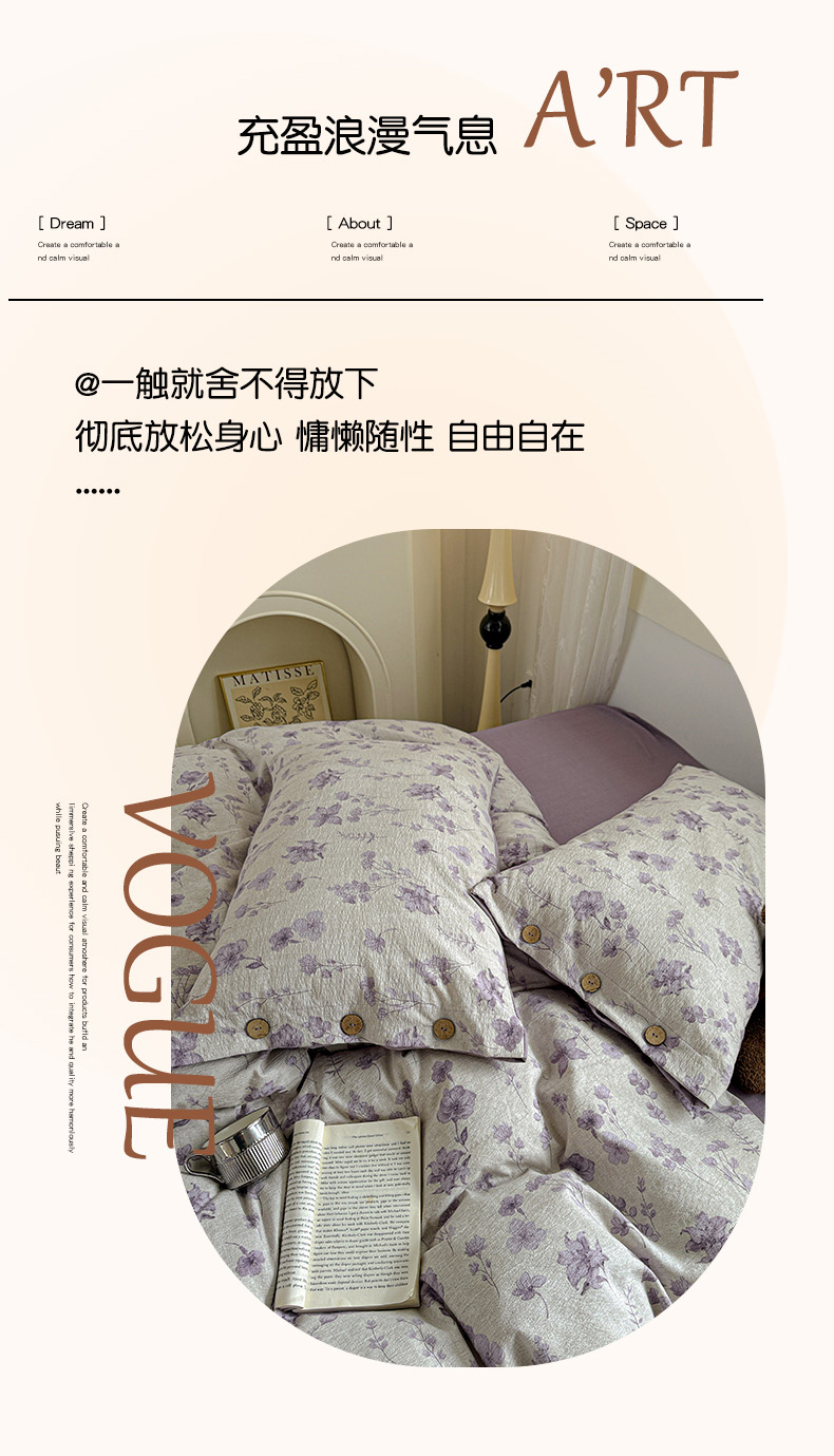 当前位置: 91家纺网 > 商品网购 > 床品套件 > 四件套 > 其它四件套 > 水墨江南 2025新款原麻复古印花纽扣款四件套 紫藤