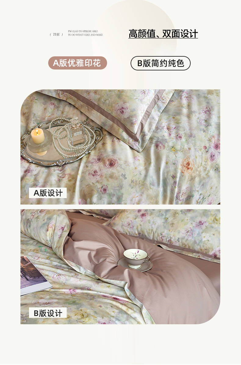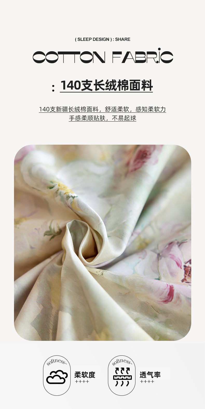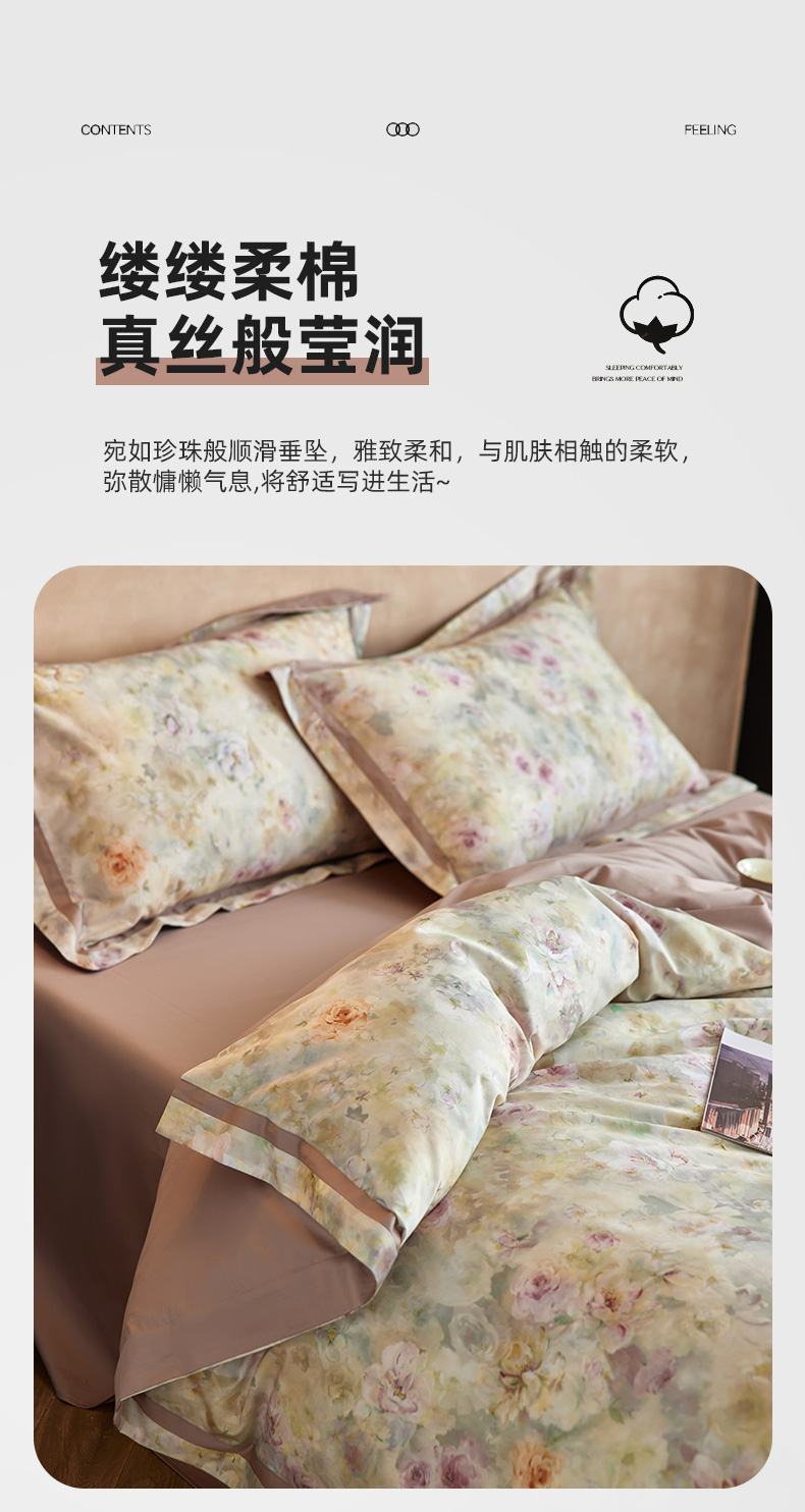 当前位置: 91家纺网 > 商品网购 > 床品套件 > 四件套 > 长绒棉四件套 > 轩和家居 2025新款轻奢A类70S长绒棉纯棉印花四件套-第二组 馨月