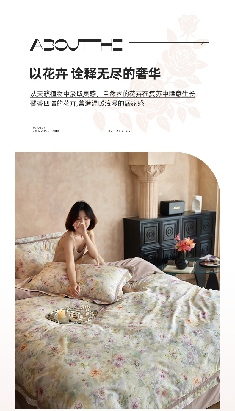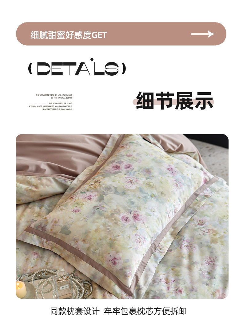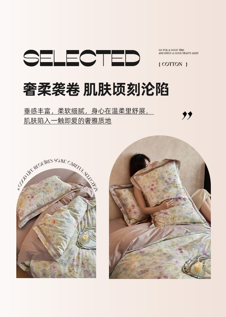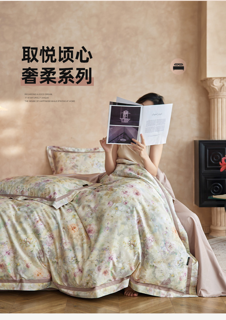 当前位置: 91家纺网 > 商品网购 > 床品套件 > 四件套 > 长绒棉四件套 > 轩和家居 2025新款轻奢A类70S长绒棉纯棉印花四件套-第二组 馨月