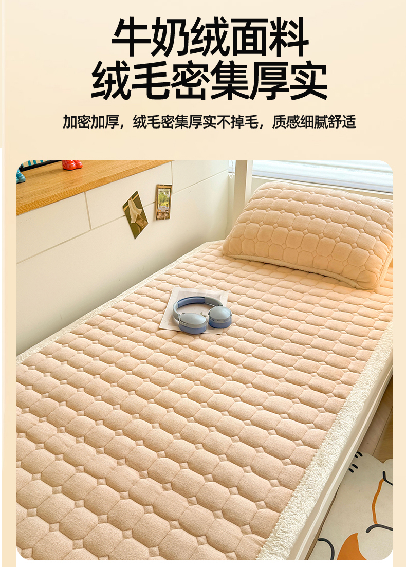 当前位置: 91家纺网 > 商品网购 > 床垫/床褥 > 普通床垫 > 雯豆家纺 雯豆2025冬季新品牛奶绒床垫床护垫学生上下铺床褥子纯色绒垫子牛奶绒床褥-山茶杏