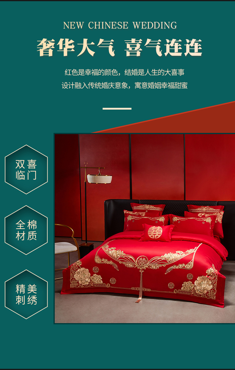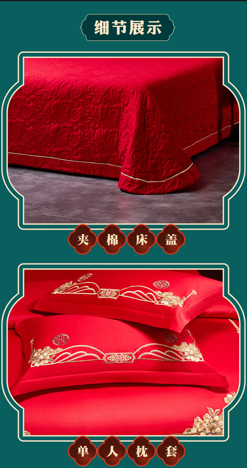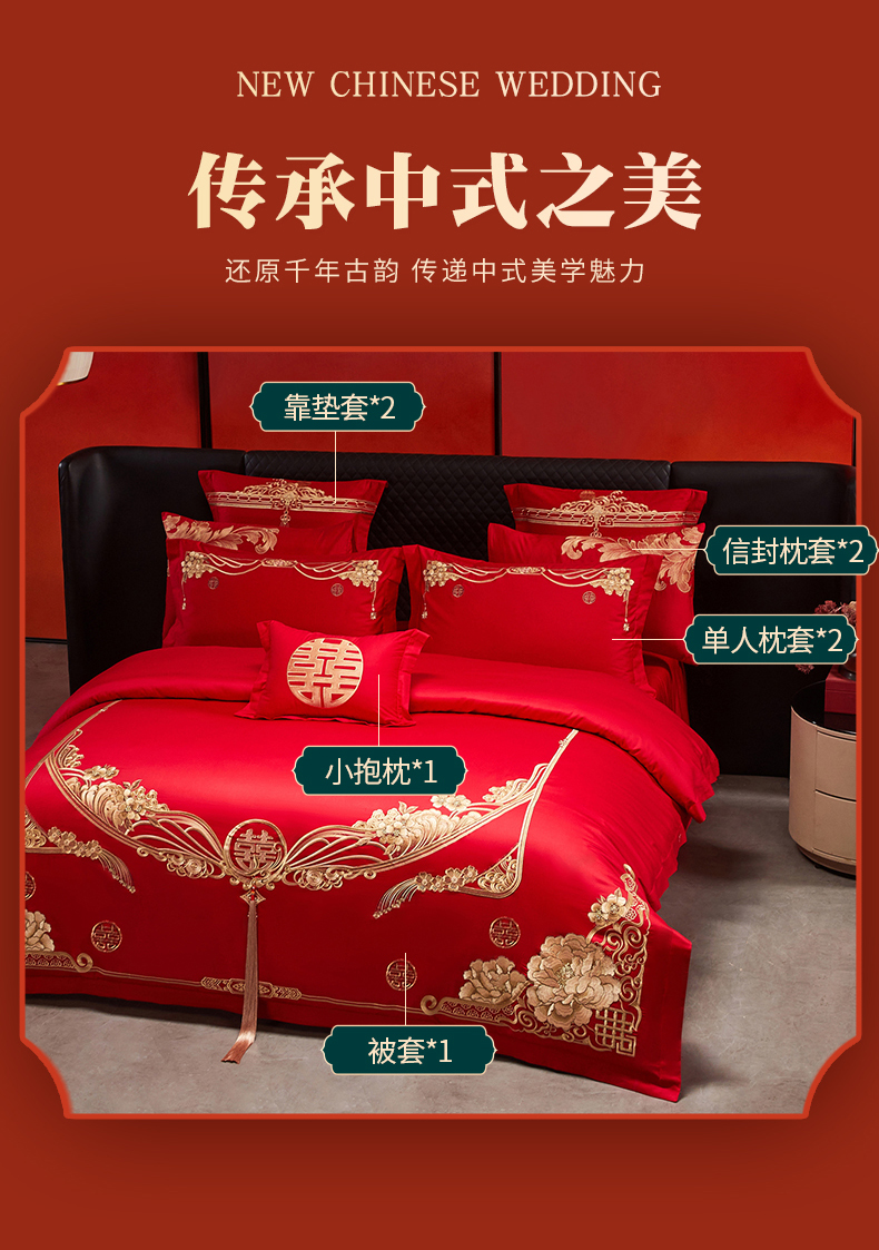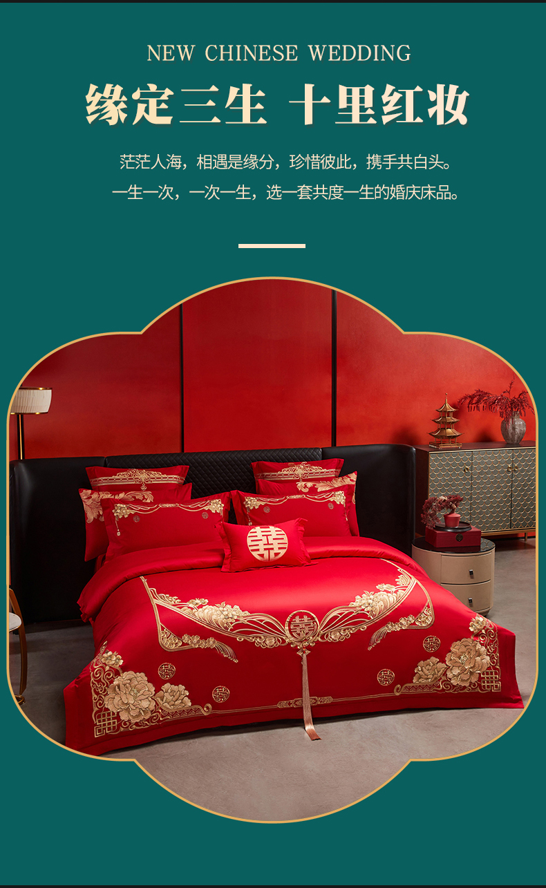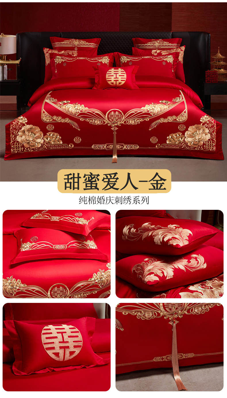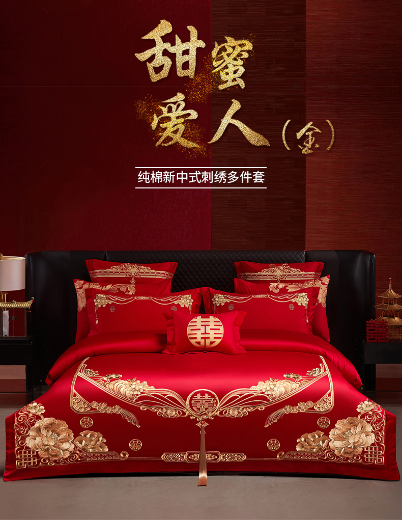 当前位置: 91家纺网 > 商品网购 > 床品套件 > 四件套 > 婚庆四件套 > 宏羽纺家纺 2025新款全棉100%全棉新中式婚庆多件套 全棉甜蜜爱人-金
