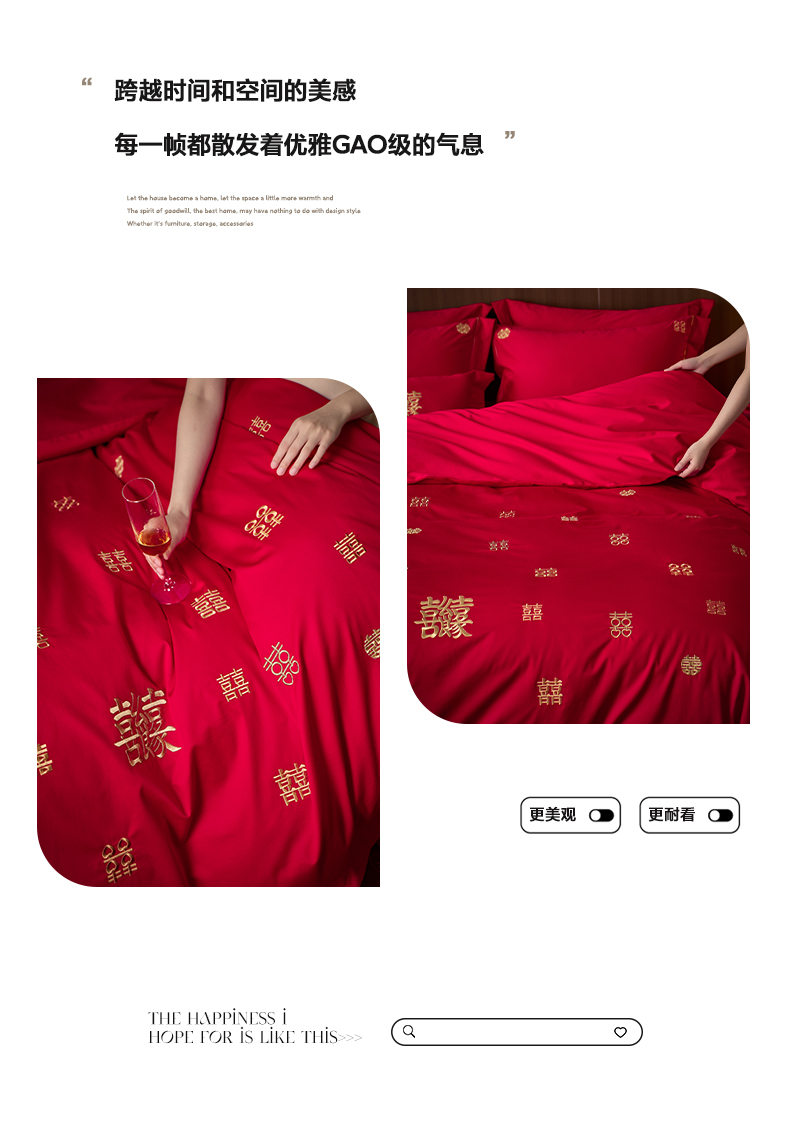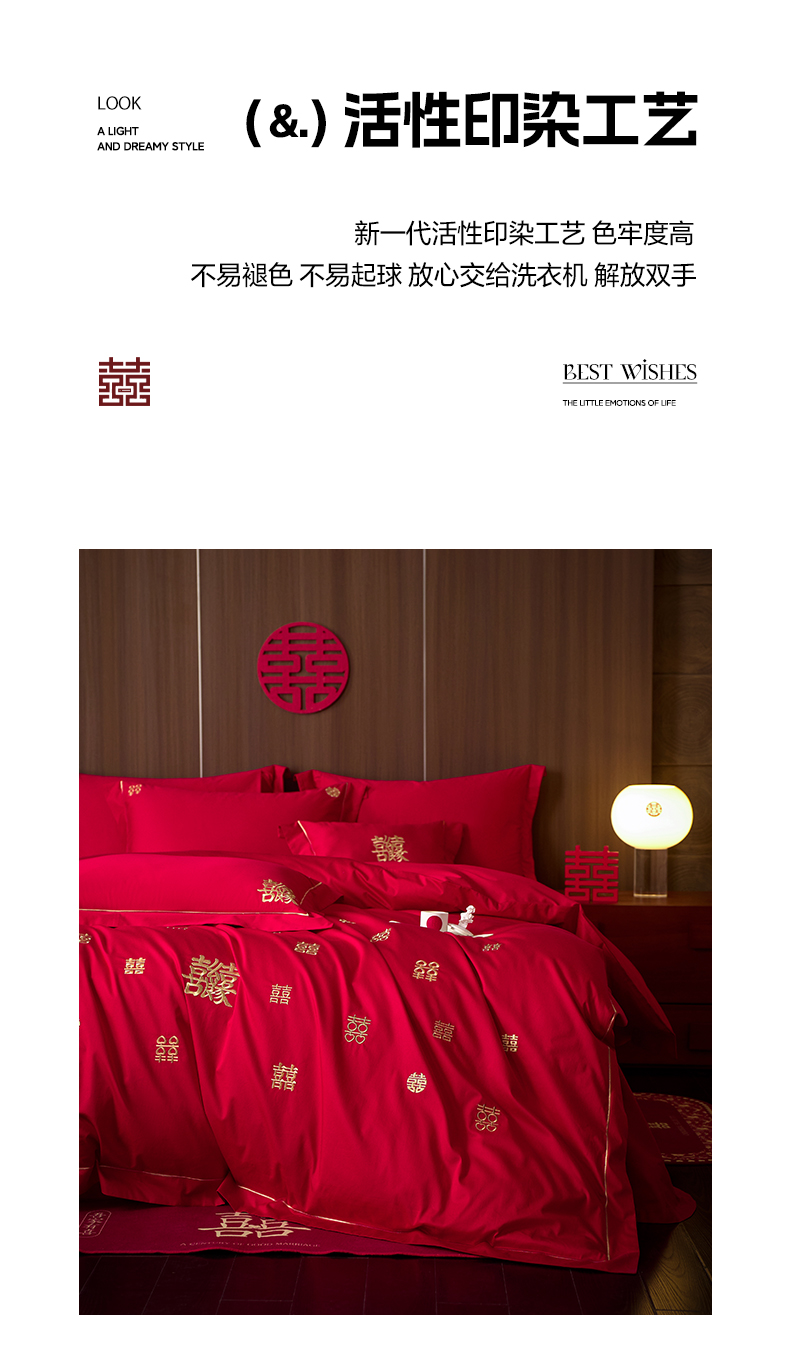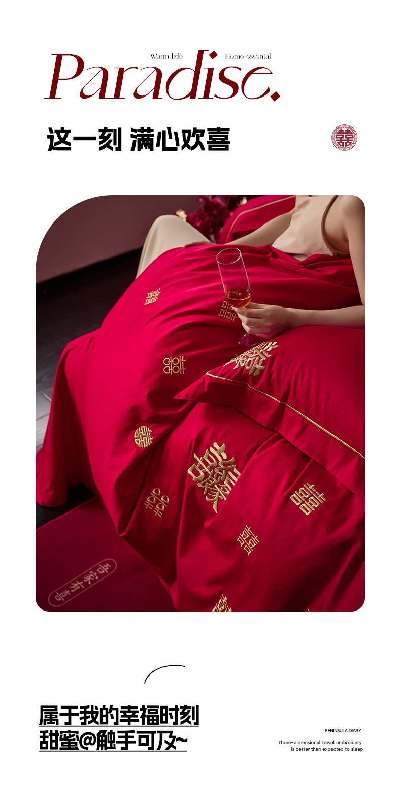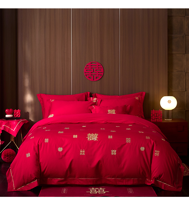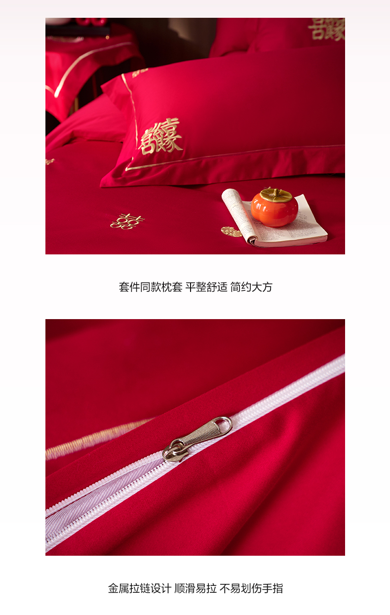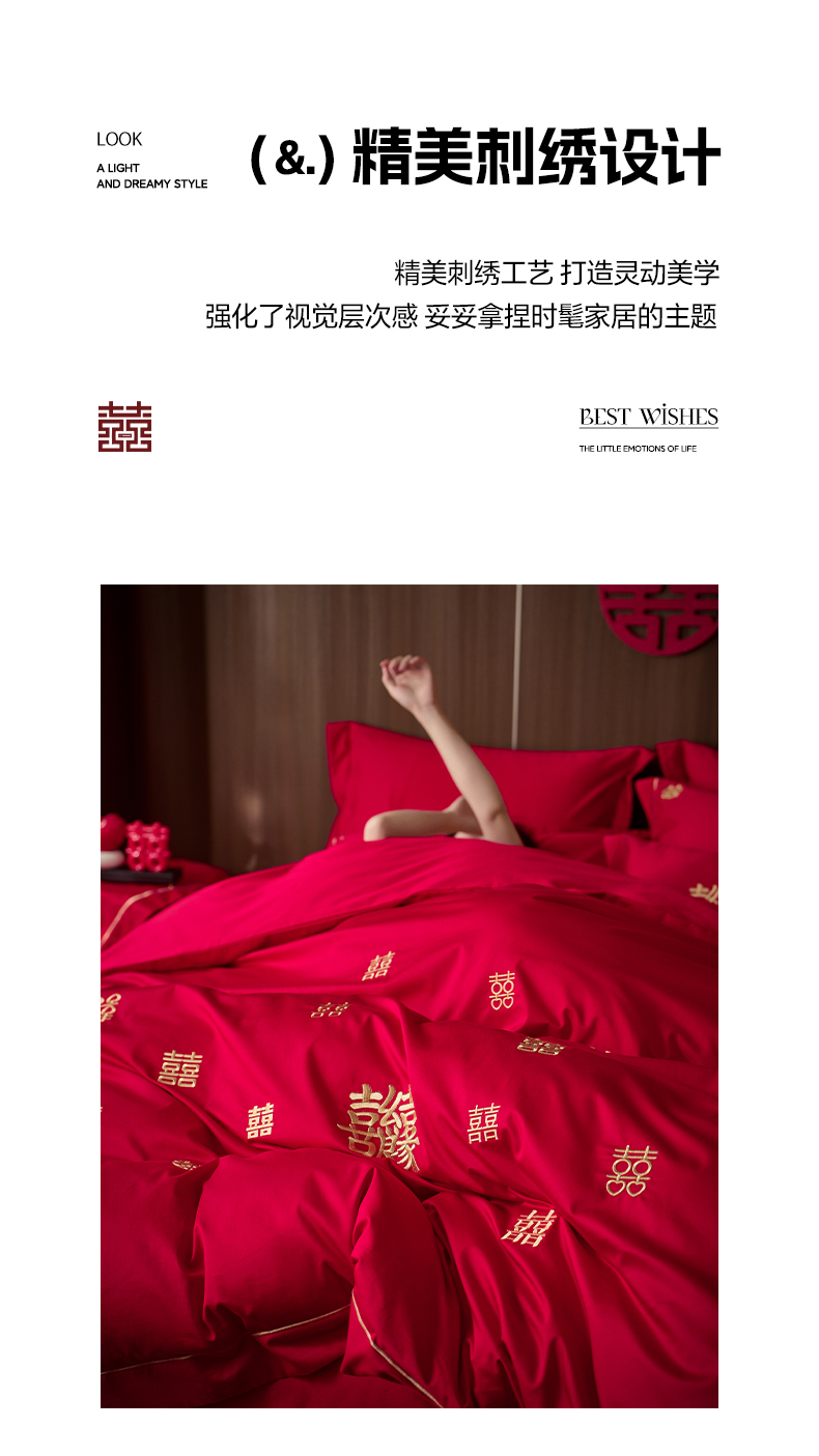 商品名称:简纯主义 2025新款100支长绒棉刺绣四件套花开并蒂系列喜满良缘