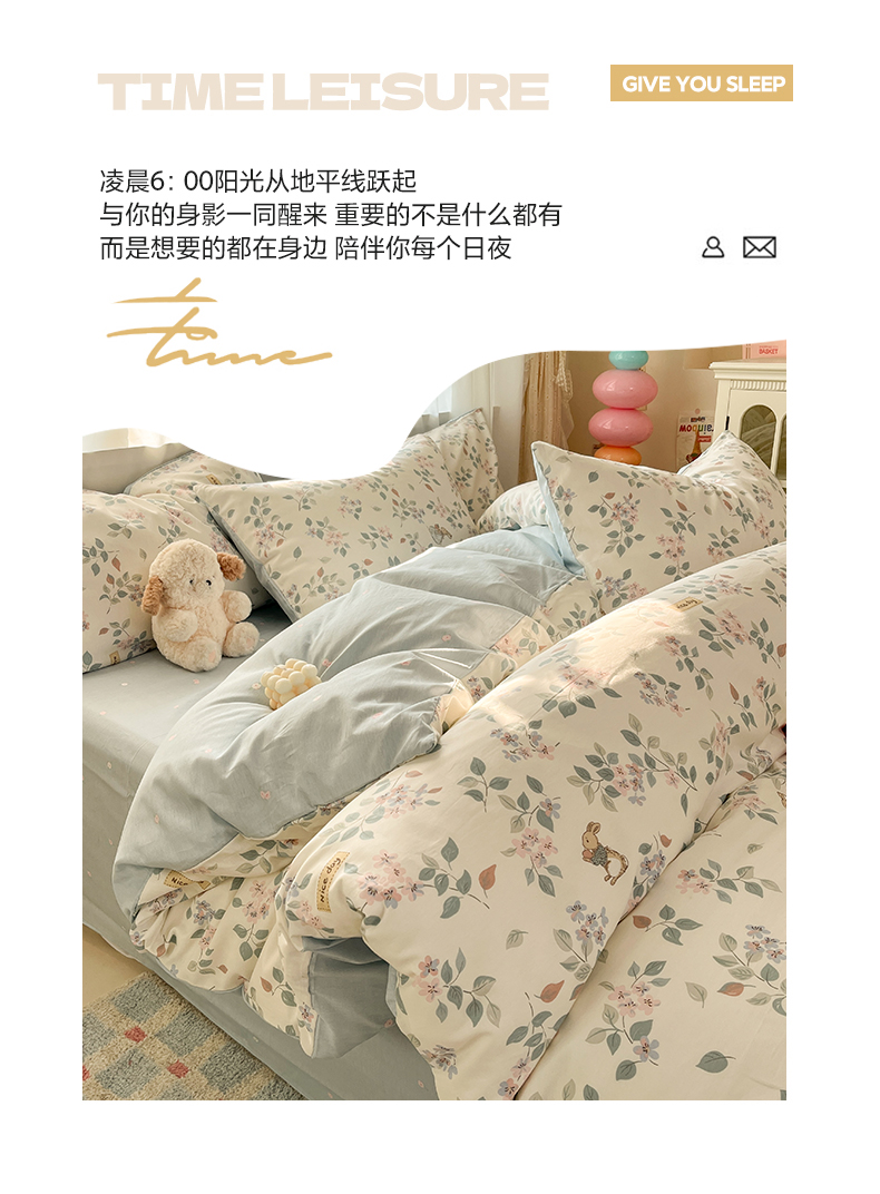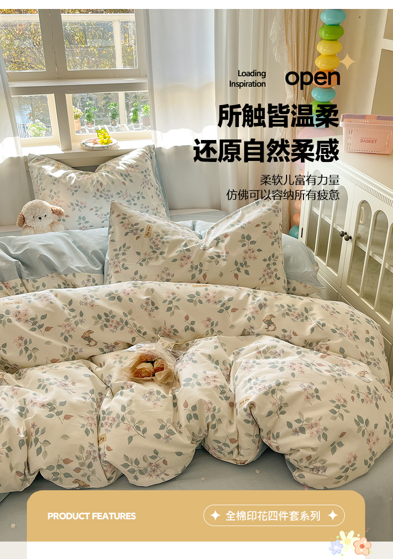 总盛馨家纺 2023新款ins北欧风高支高密全棉喷气小清新纯棉四件套,花丛兔,锦鲤,快乐小狗,梦幻,梦境小兔,入夏,若微,溪沐,叶墨新晨,樱桃兔,星球家园,草莓兔,花粉兔,花花小熊,花开富贵,花蓝兔,花胥梦粉,花韵,狂想曲蓝,萌宠乐园,蜜桃公主,莫奈花园蓝,奇妙幻想蓝,曲奇小熊,圣歌娜,诗情画意,桃桃兔,甜蜜小花,文特森 咖,小黄鸭,叶叶小花,油画草莓,丛林家园,粉色花海,可可大草莓,浪漫花朵,满庭花开,漫时光,暖阳紫,郁金香小兔