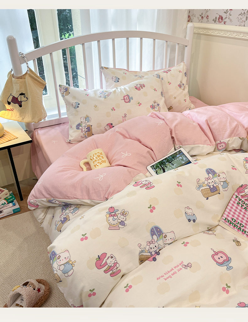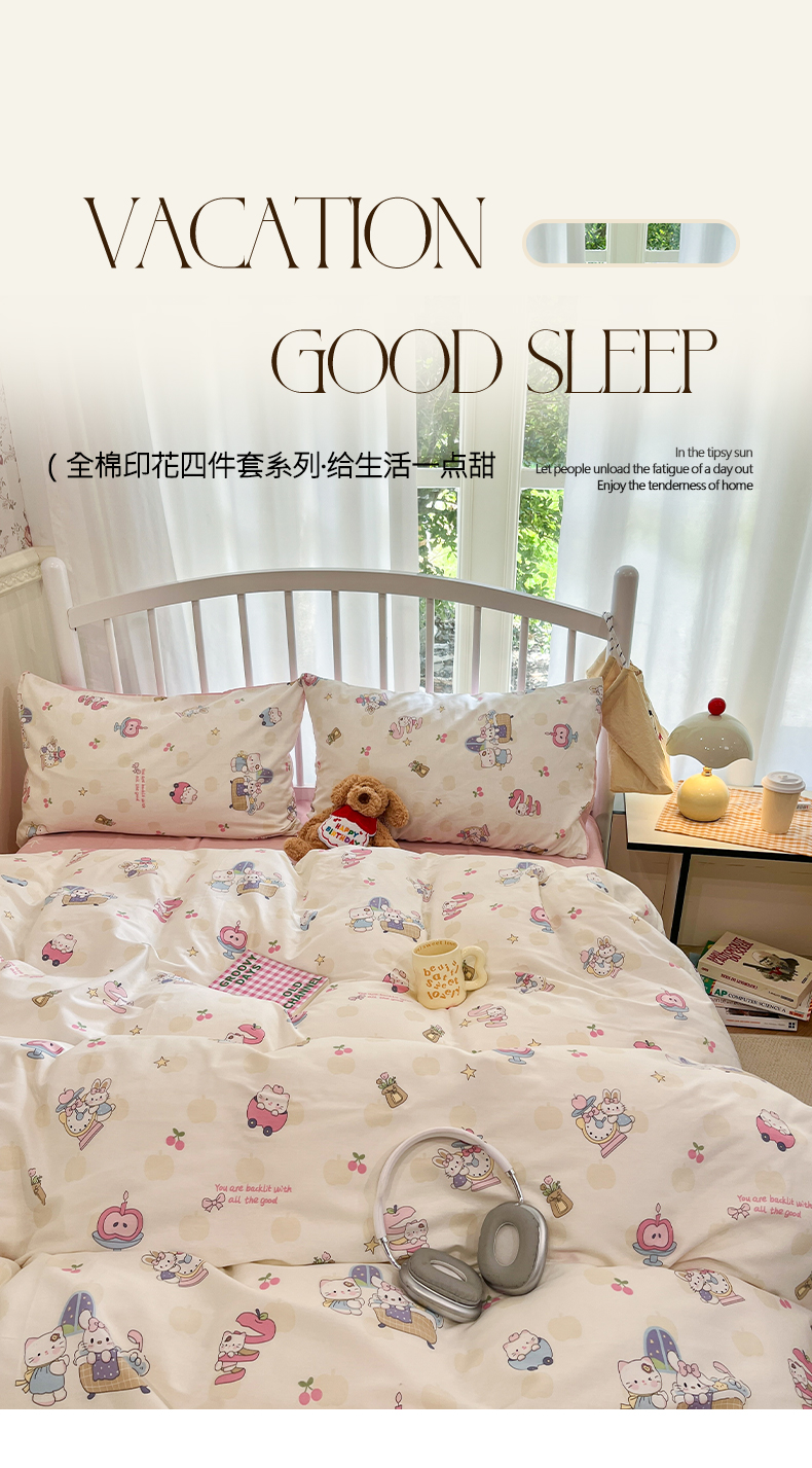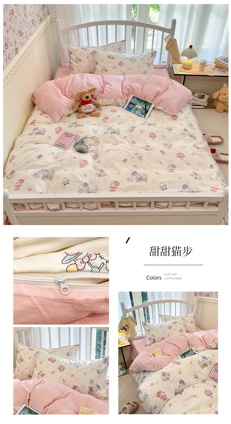 盛馨家纺 2025年开学季秋冬新品小清新全棉学生三件套四件套床笠四件套跑量款系列 甜甜猫步