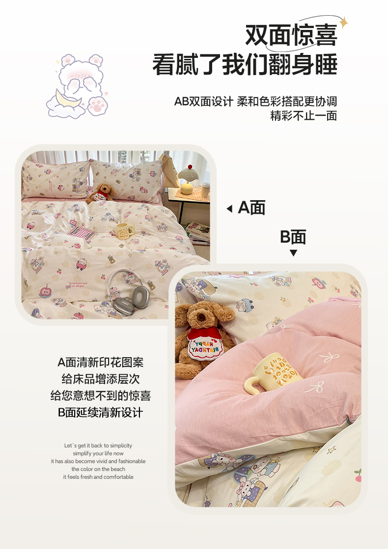 总盛馨家纺 2023新款ins北欧风高支高密全棉喷气小清新纯棉四件套,花丛兔,锦鲤,快乐小狗,梦幻,梦境小兔,入夏,若微,溪沐,叶墨新晨,樱桃兔,星球家园,草莓兔,花粉兔,花花小熊,花开富贵,花蓝兔,花胥梦粉,花韵,狂想曲蓝,萌宠乐园,蜜桃公主,莫奈花园蓝,奇妙幻想蓝,曲奇小熊,圣歌娜,诗情画意,桃桃兔,甜蜜小花,文特森 咖,小黄鸭,叶叶小花,油画草莓,丛林家园,粉色花海,可可大草莓,浪漫花朵,满庭花开,漫时光,暖阳紫,郁金香小兔