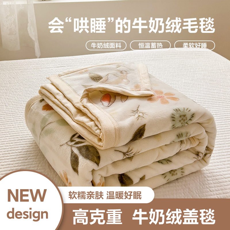 商品名称:启发毛毯 2025新款高克重双面牛奶绒盖毯 暖阳