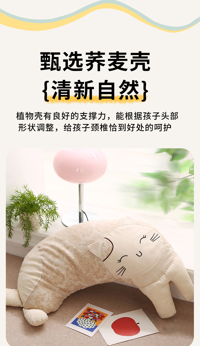 商品名称:(总)蔻眠 棉麻可爱猫卡通荞麦护颈枕芯儿童学生成人枕头