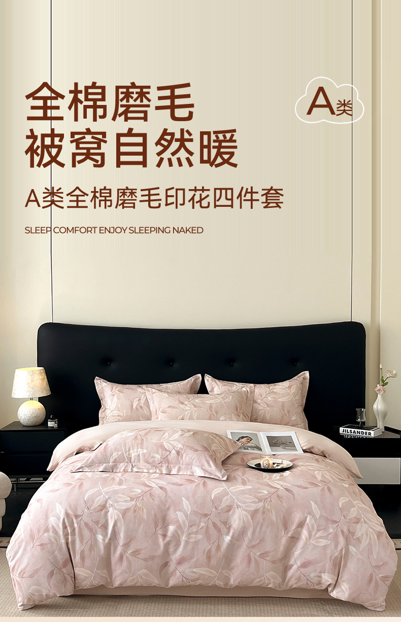 商品名称:笙意家纺 2025新款A类全棉纯棉磨毛刺绣印花四件套 米娅