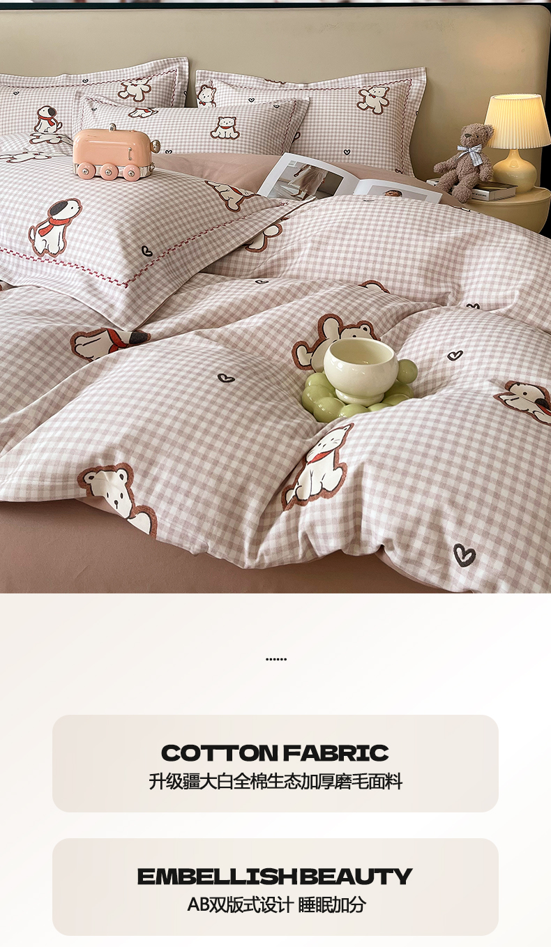 商品名称:麦田家纺 2025新款疆大白全棉纯棉加厚生态磨毛四件套 萌趣