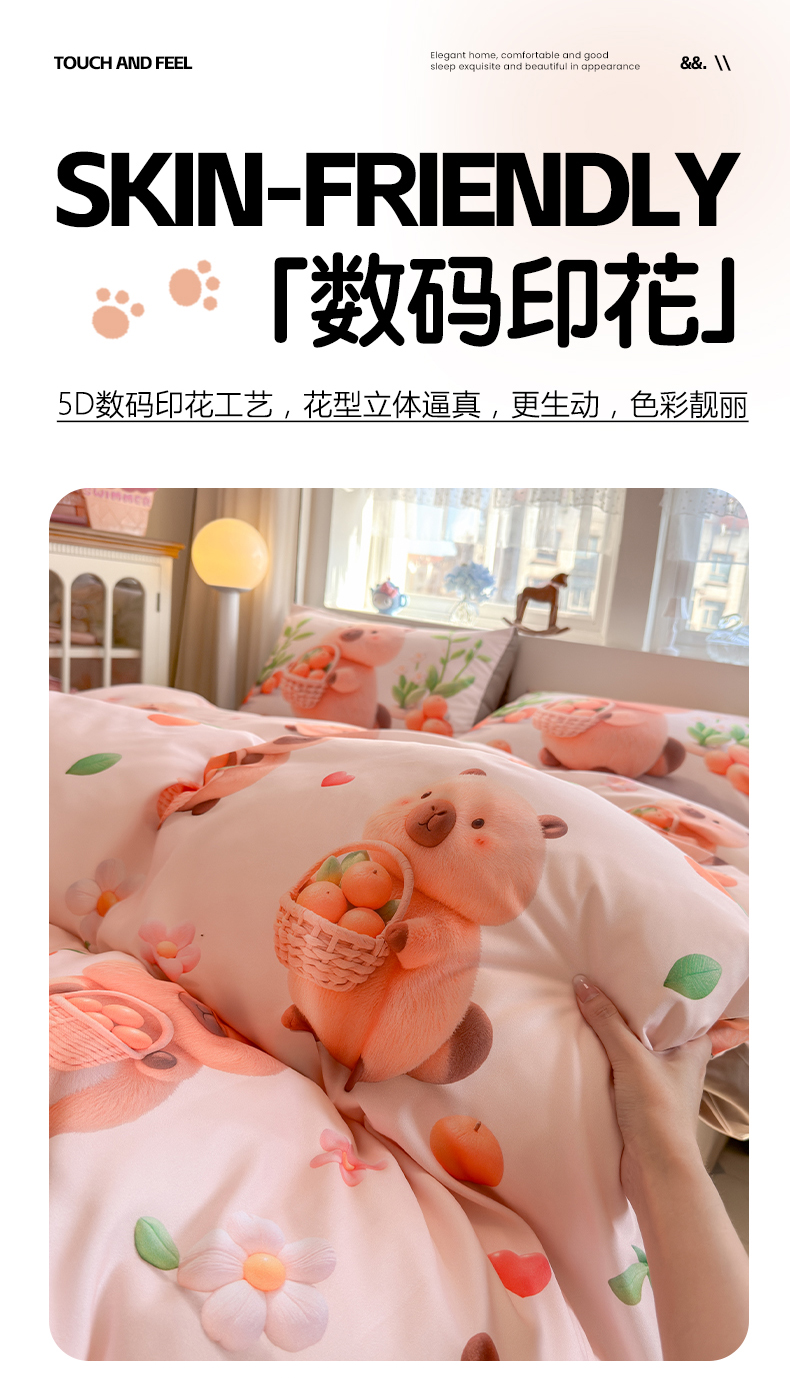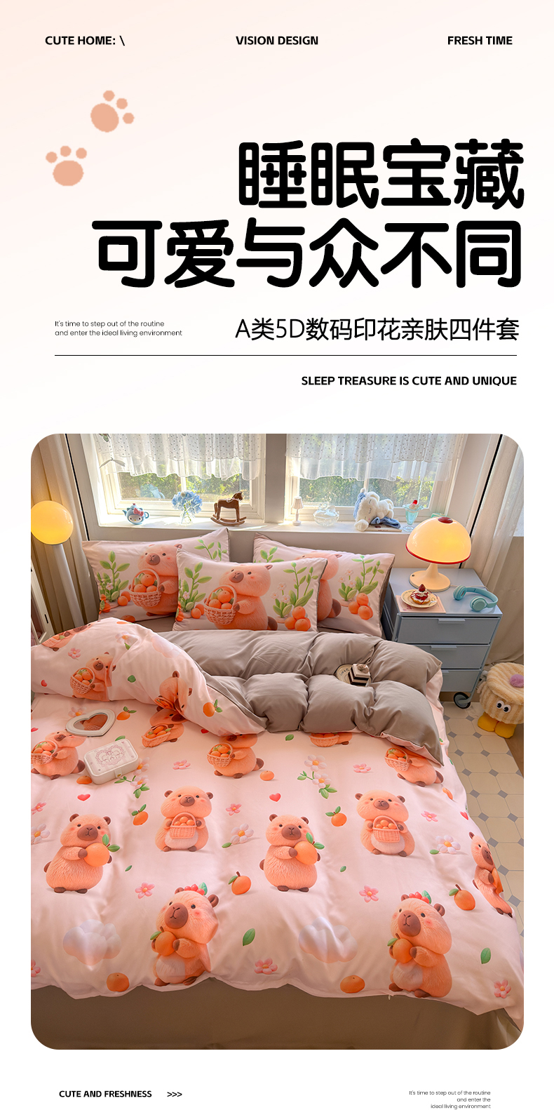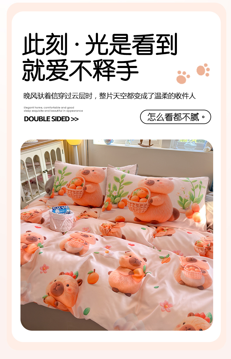 当前位置: 91家纺网 > 商品网购 > 床品套件 > 四件套 > 其它四件套 > 优卡迪家纺馆 2025新款110克5D数码印花四件套 橙子卡皮