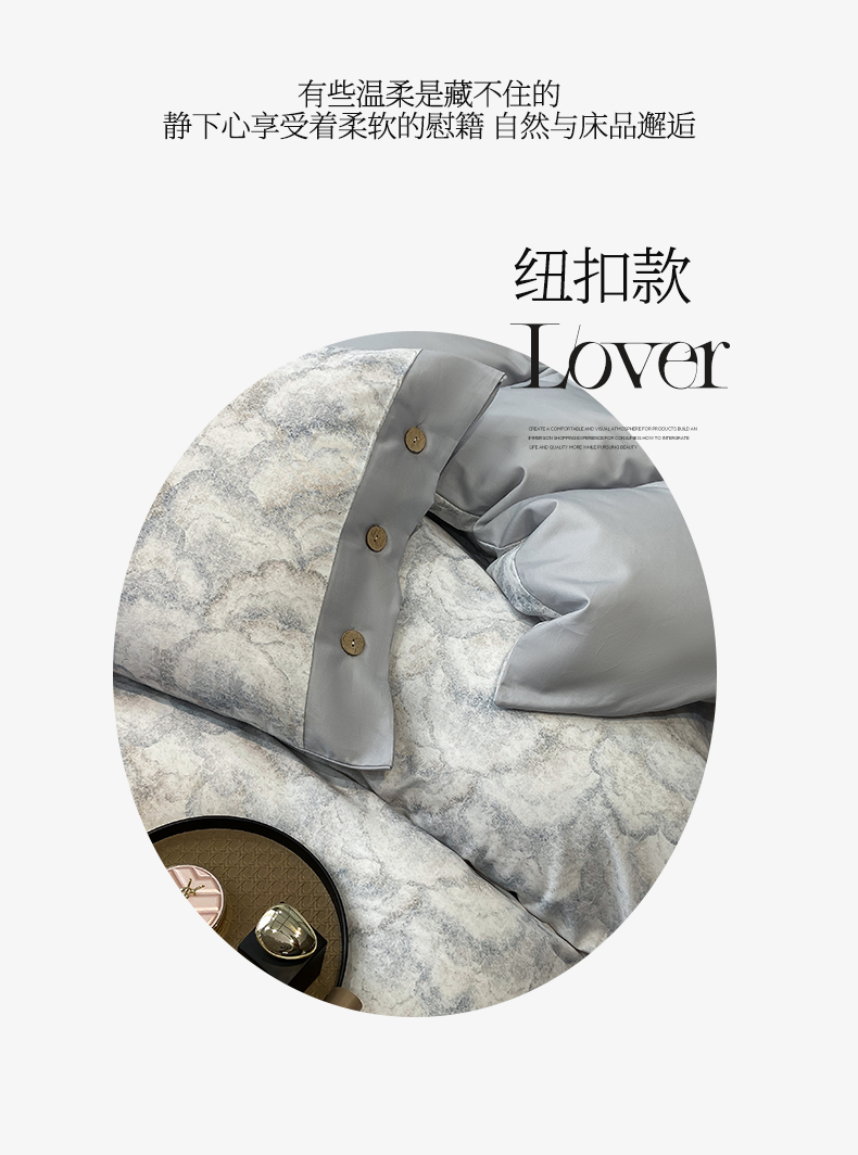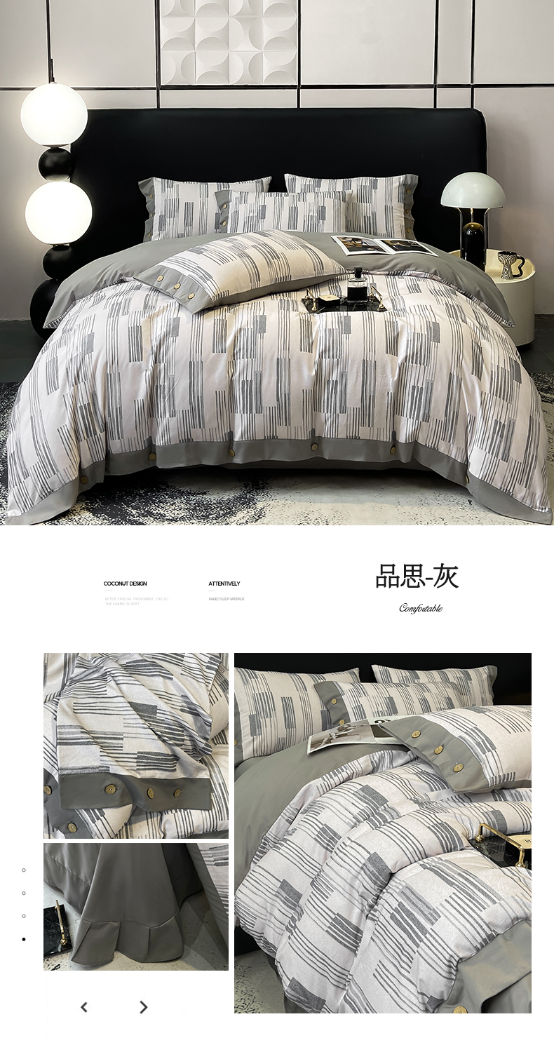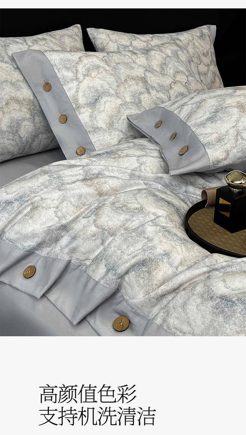 商品名称:麦田家纺 2025新款全棉纯棉轻奢加厚磨毛纽扣款四件套 雾林-浅灰