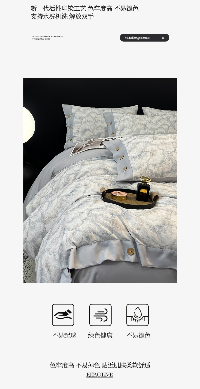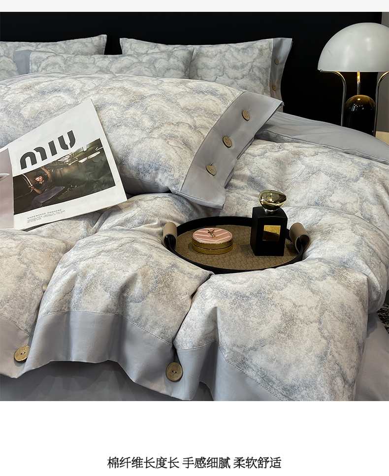 麦田家纺 2025新款全棉纯棉轻奢加厚磨毛纽扣款四件套 雾林-浅灰