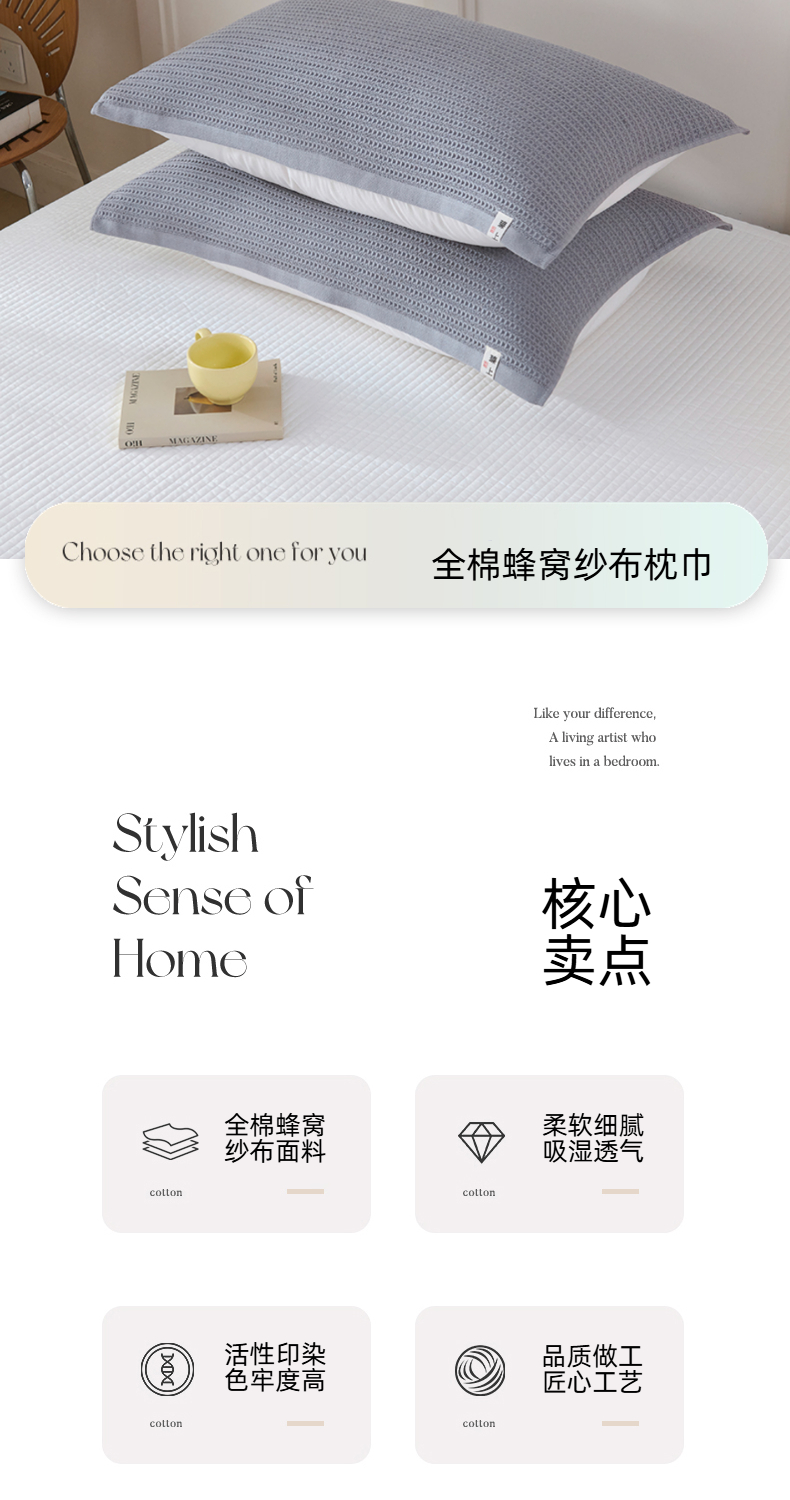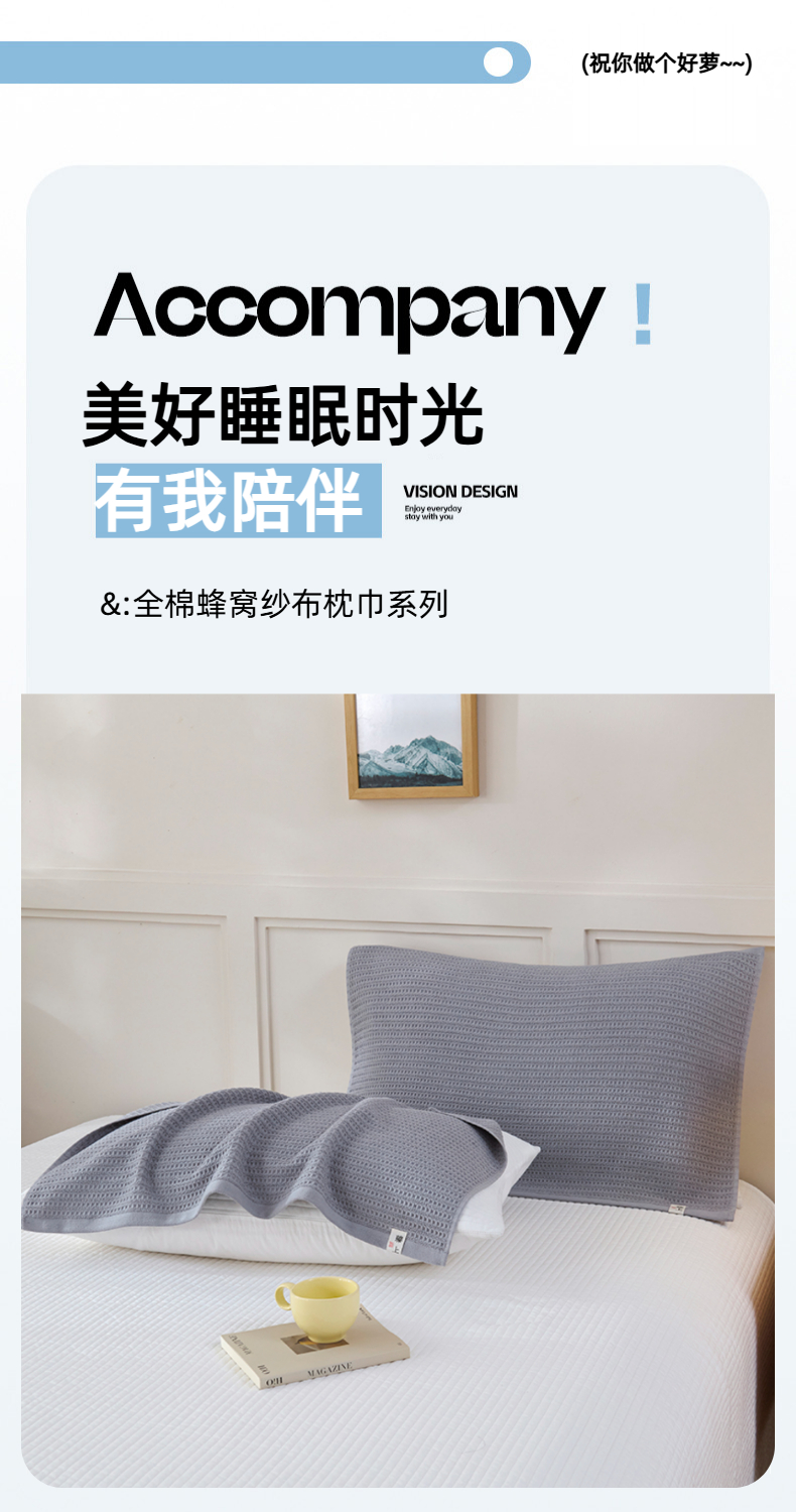 • 91家纺网 家纺一手货源 找家纺 悦然毛巾被 2025新款全棉纯棉蜂窝棉语单枕巾 枕巾单件 蜂窝棉语银灰 52x78cm枕巾一对