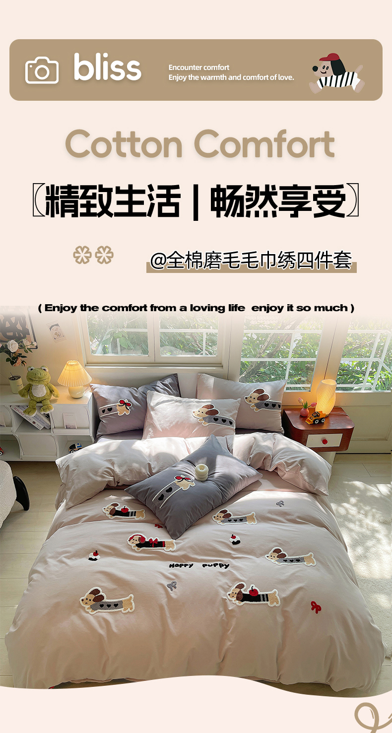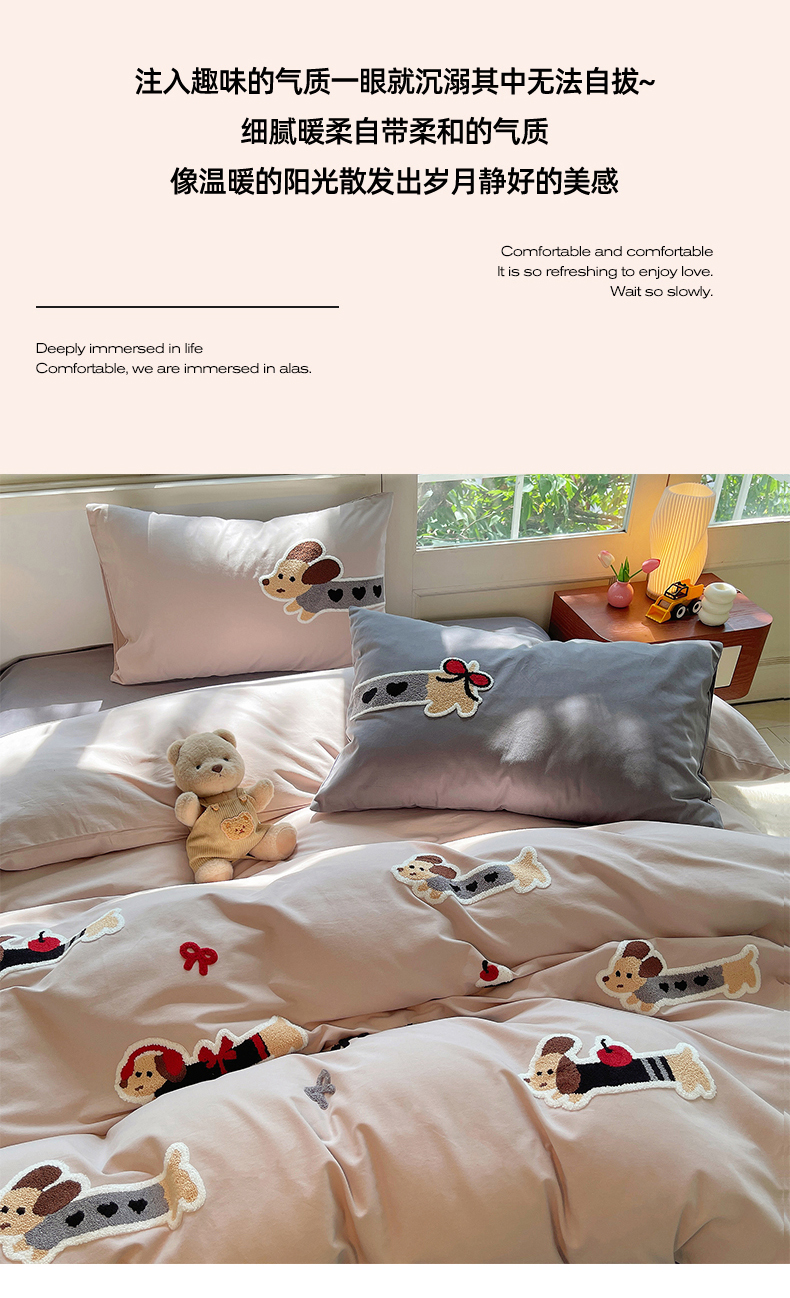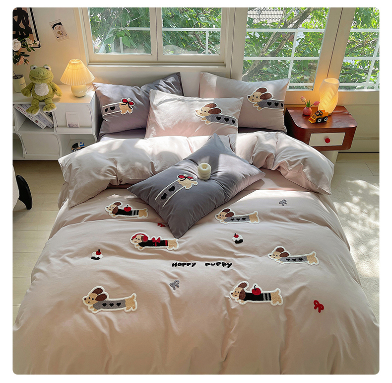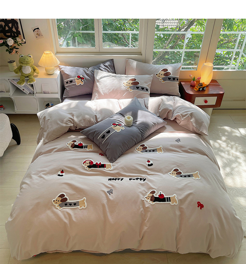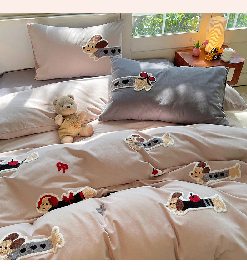 当前位置: 91家纺网 > 商品网购 > 床品套件 > 四件套 > 其它四件套 > 炫拼家纺 2026新款全棉纯棉磨毛卡通满版绣加厚纯棉四件套-米兜 米兜-腊肠狗伯爵