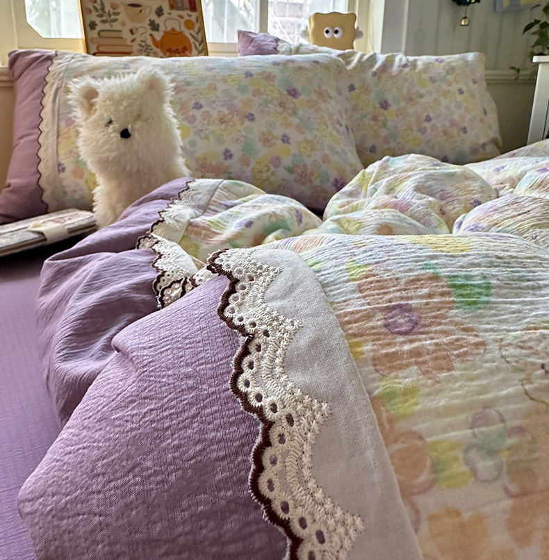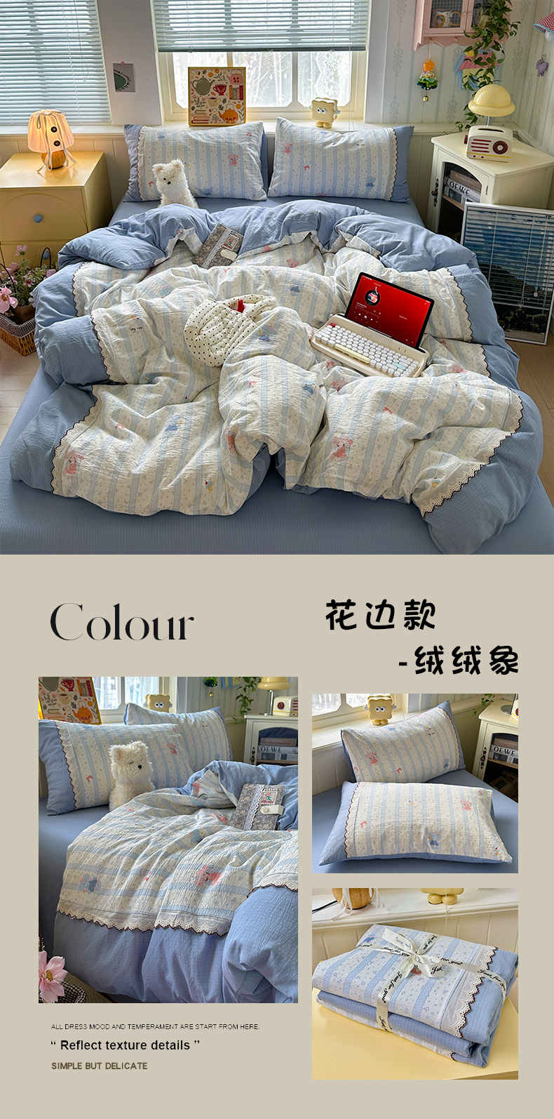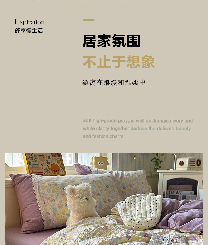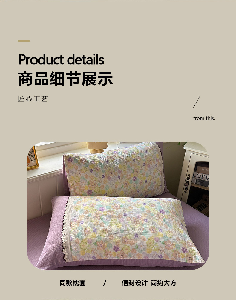 当前位置: 91家纺网 > 商品网购 > 床品套件 > 四件套 > 全棉普通四件套 > 水墨江南 2025新款云感皱皱纱全棉花边四件套场景一 花边款-花雨