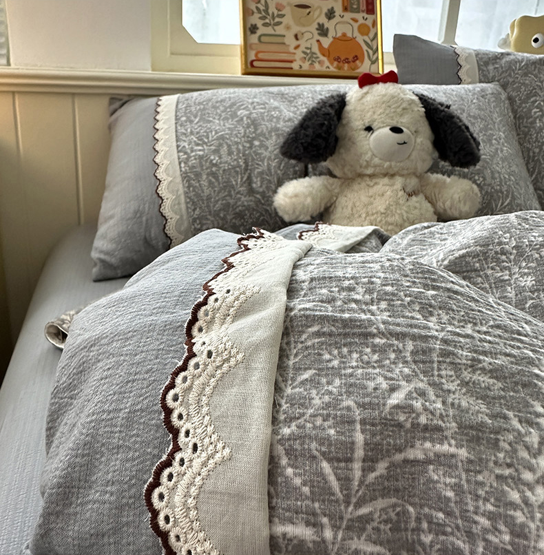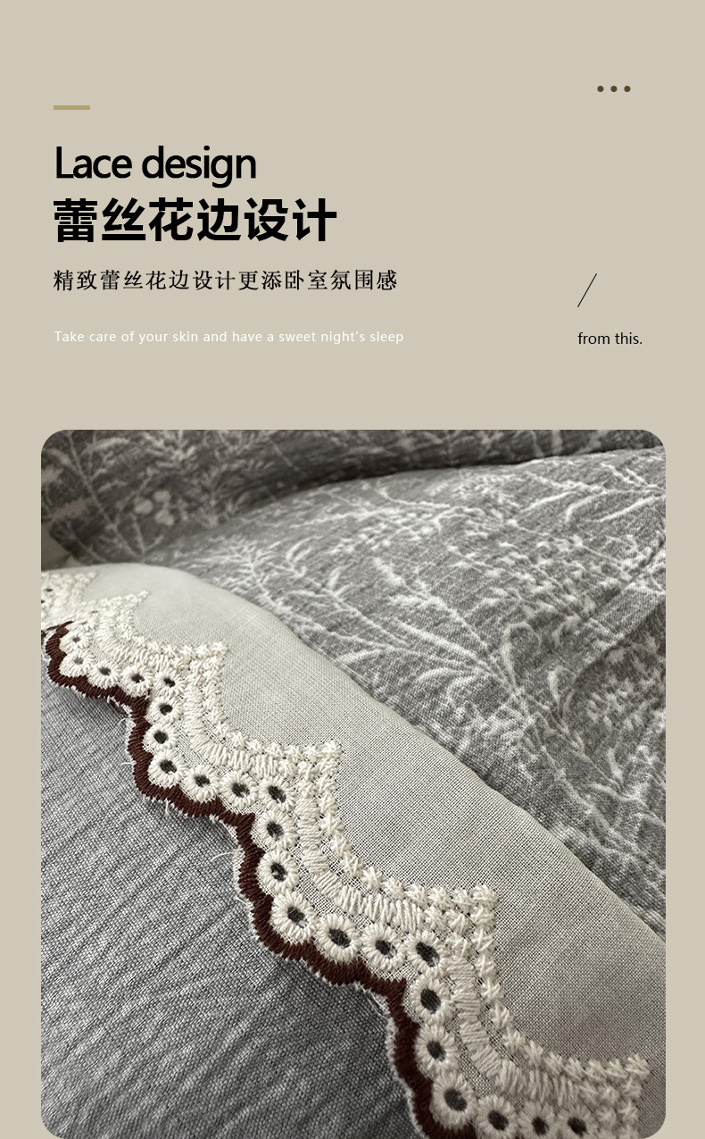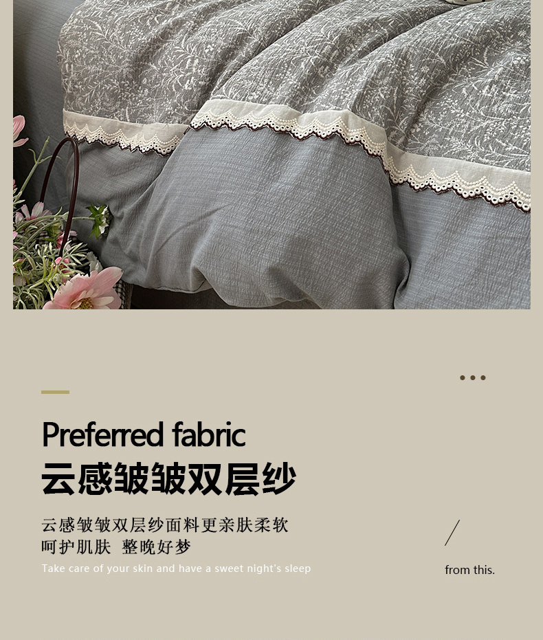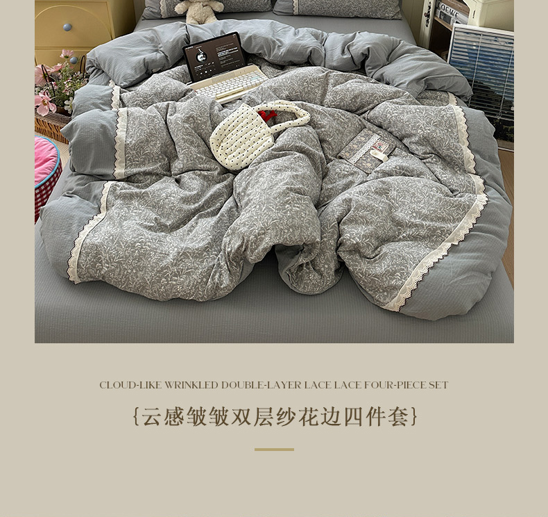 当前位置: 91家纺网 > 商品网购 > 床品套件 > 四件套 > 全棉普通四件套 > 水墨江南 2025新款云感皱皱纱全棉花边四件套场景一 花边款-枝蔓
