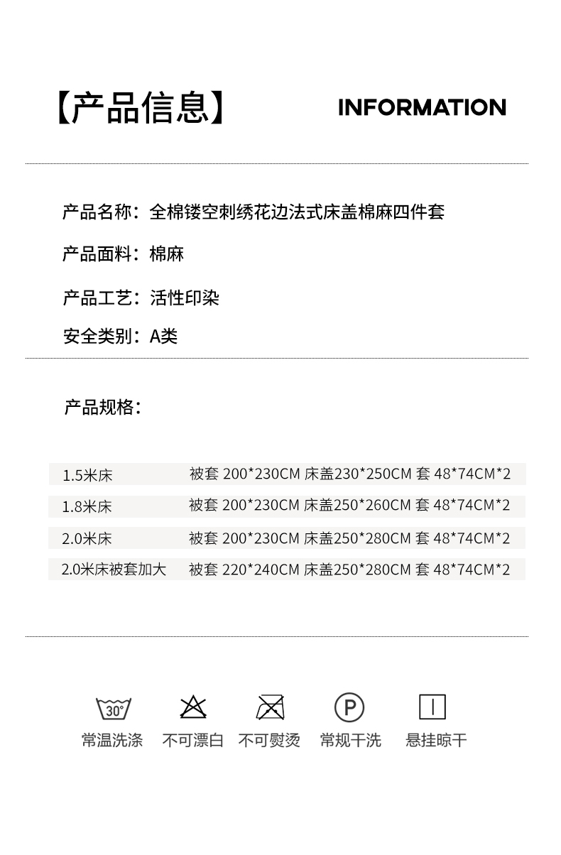 商品名称:韩约家纺 2025新款全棉纯棉镂空双色刺绣花边法式床盖款棉麻四件套 朝歌