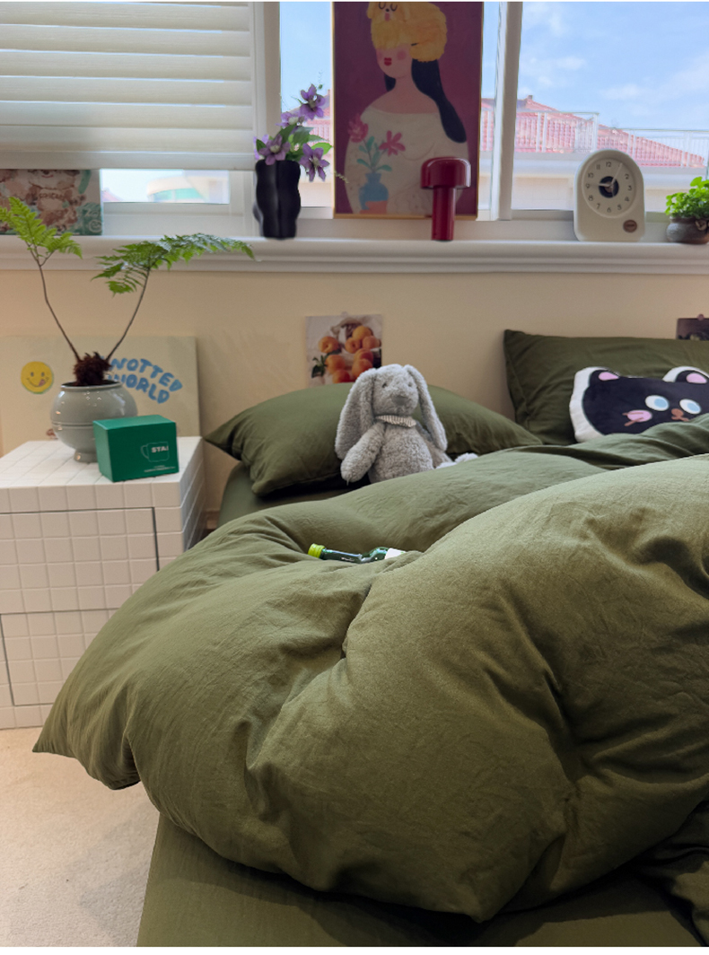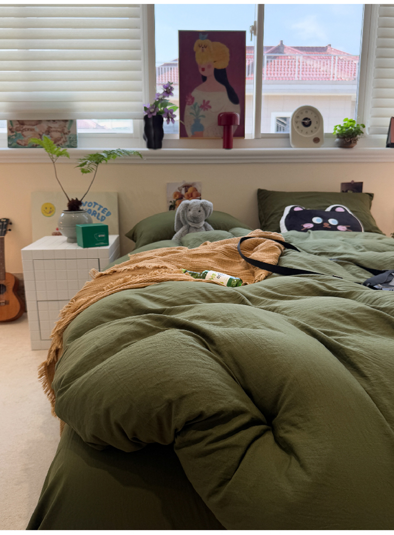 当前位置: 91家纺网 > 商品网购 > 床品套件 > 四件套 > 磨毛活性四件套 > 水墨江南 2025新款亲肤磨毛水洗棉纯色四件套 橄榄绿