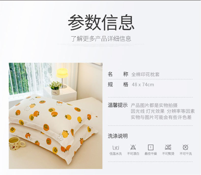 商品名称:红淳家纺 2025新款亲肤舒适全棉印花简约单枕套 芳华