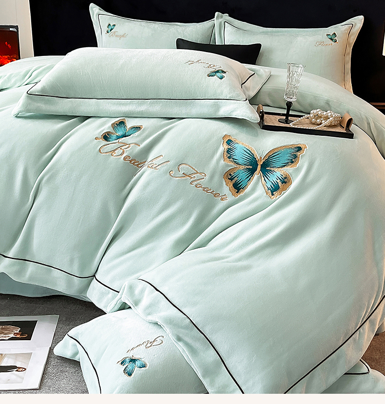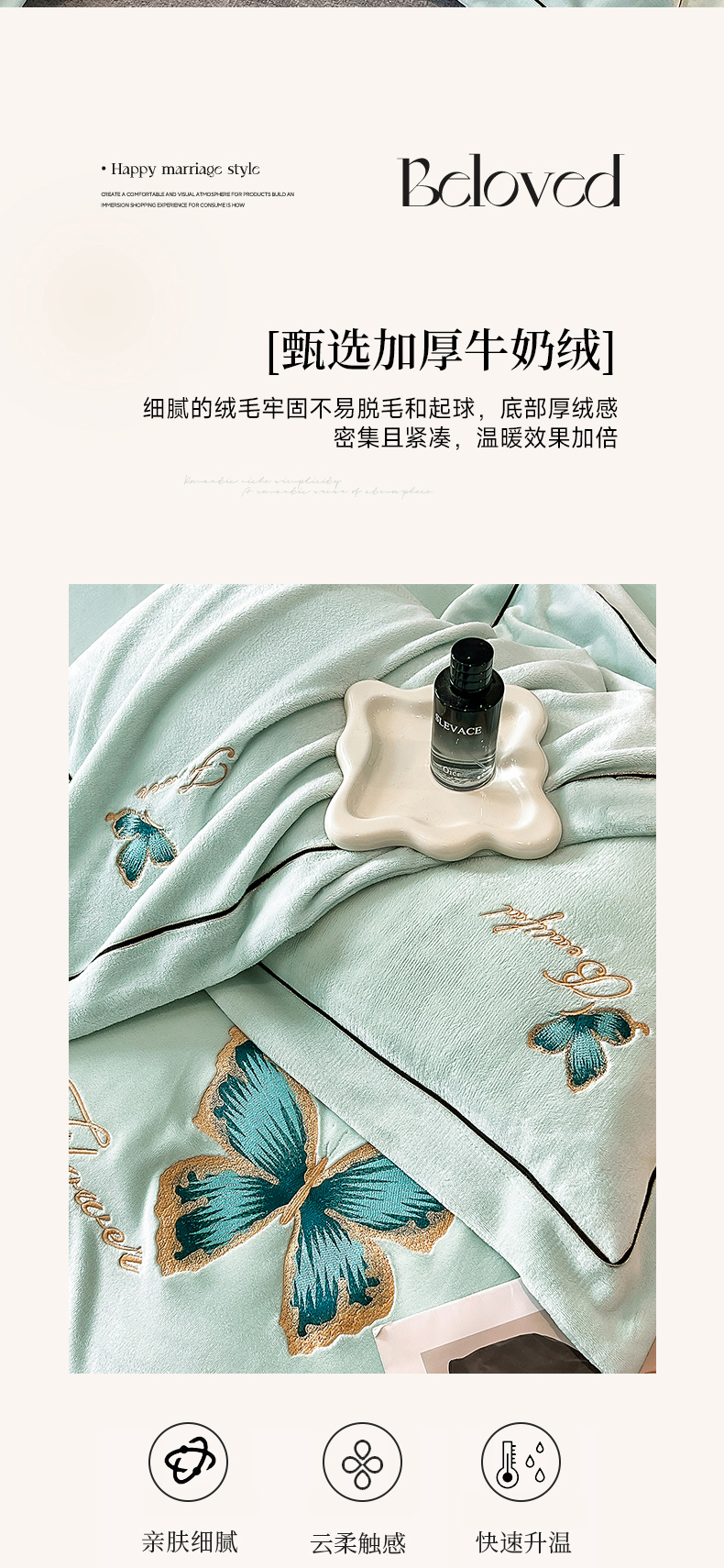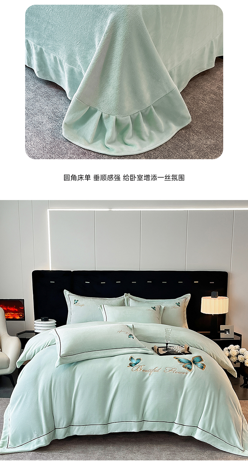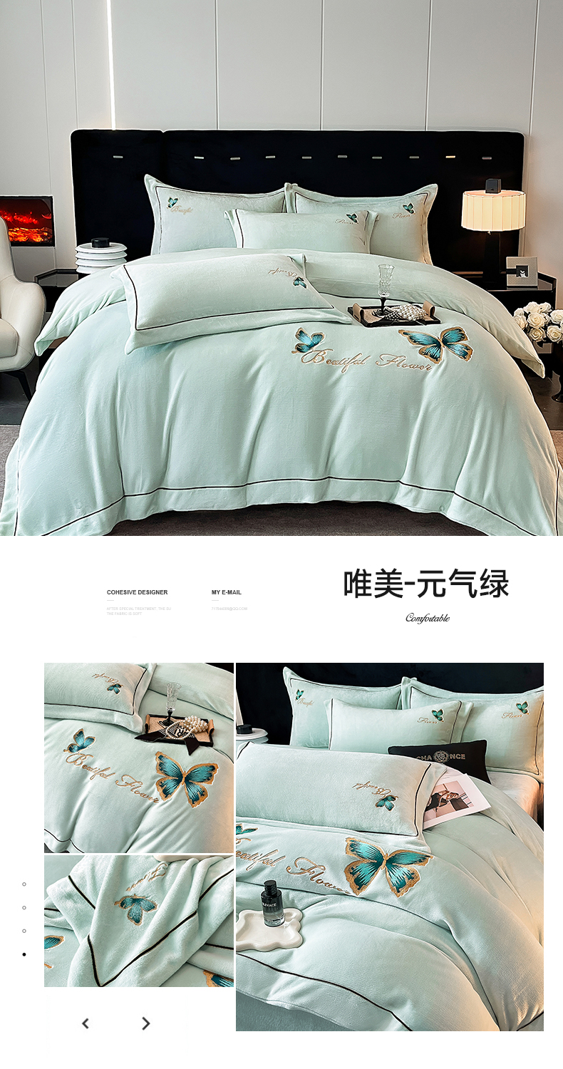 妮恒美家纺 2025新款牛奶绒刺绣四件套唯美蝴蝶结系列 唯美-元气绿